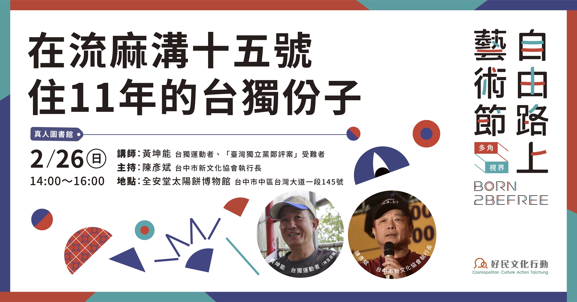 2/26(日)下午2點在全安堂太陽餅博物館,好民文化行動將邀請「民主前輩」黃坤能,與「台中新文化協會」執行長陳彥斌,一同聊聊黃坤能前輩在流麻溝的那些日子,以及他抗爭的一生。