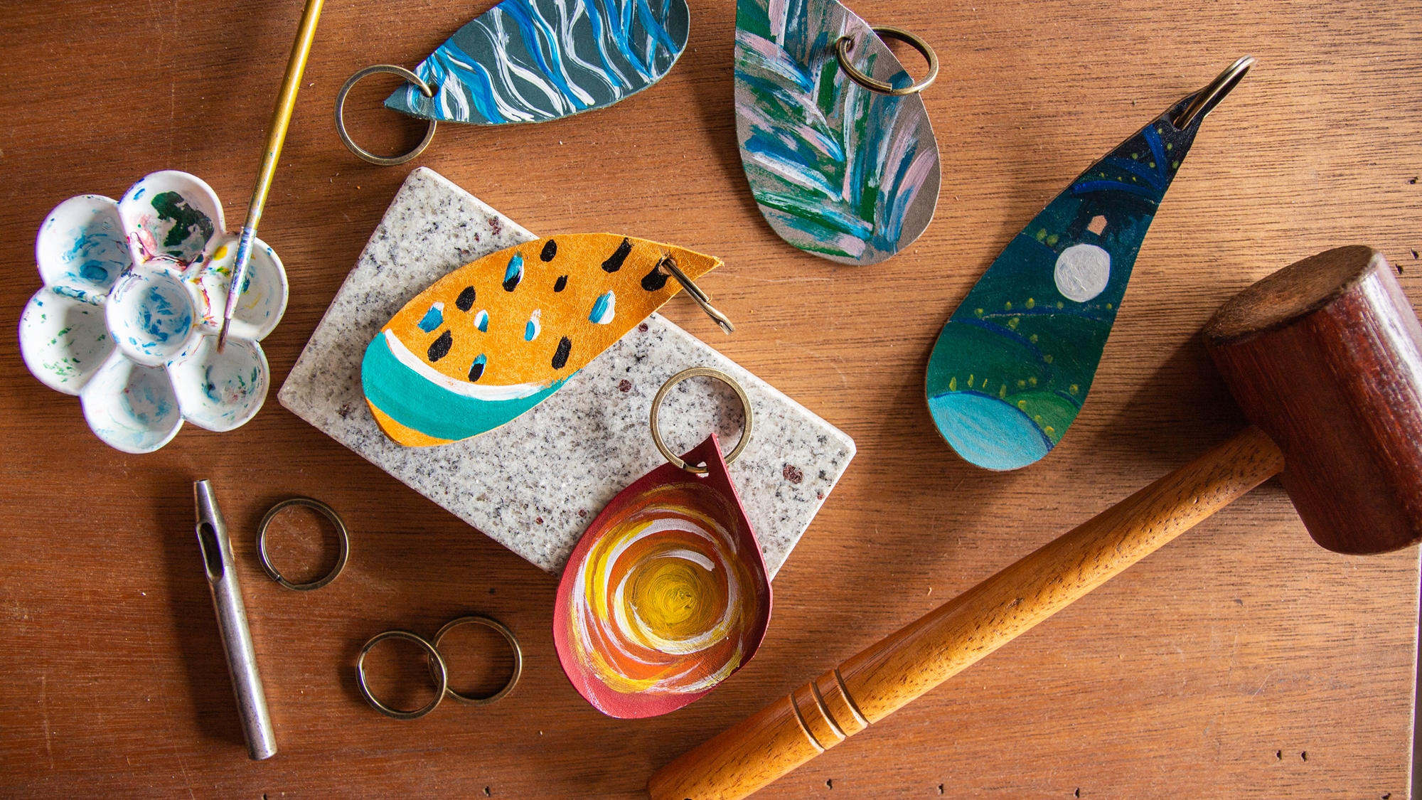 ★彩繪雨滴皮革鑰匙圈