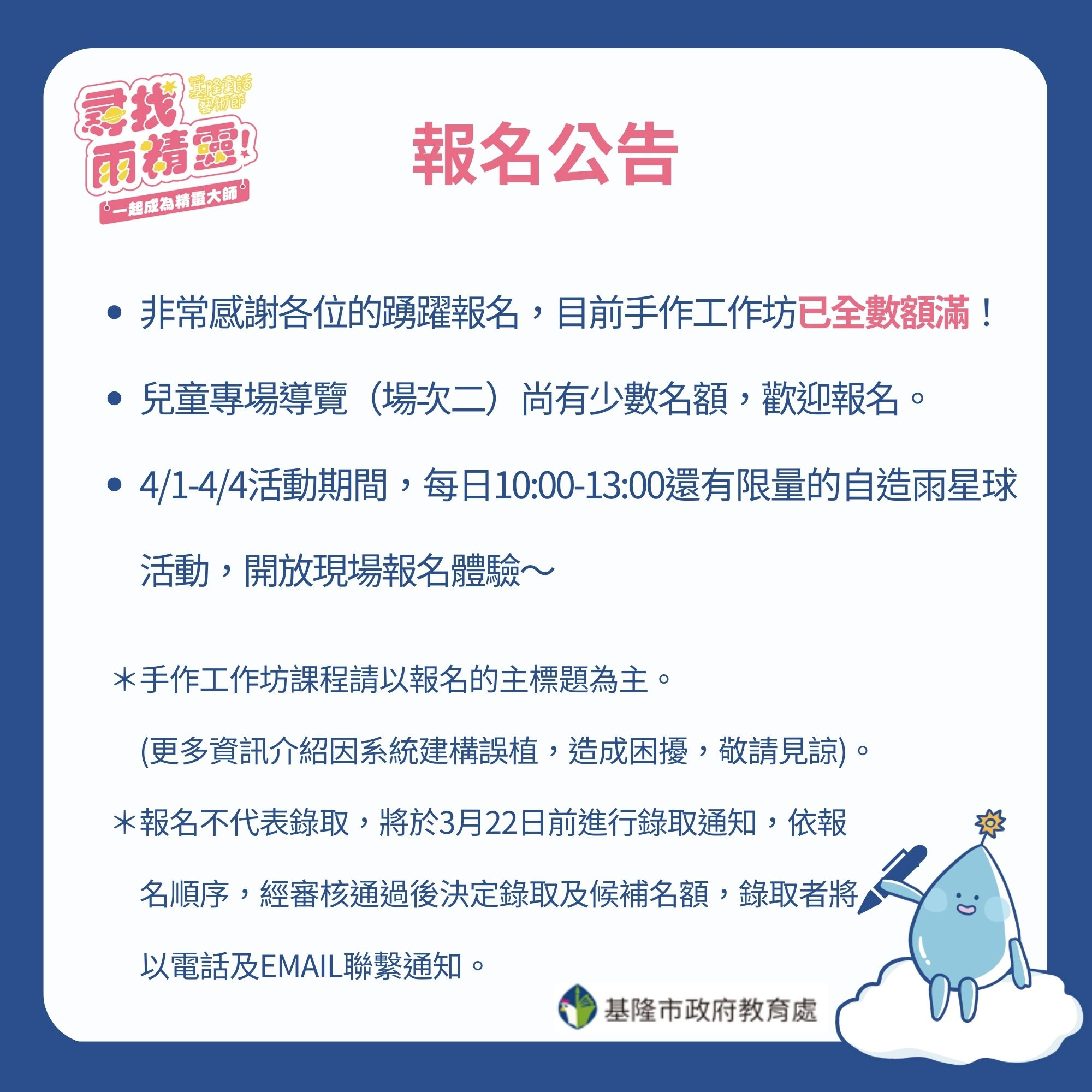 ✔依報名順序,經審核通過後決定錄取及候補名額,錄取者將以電話及EMAIL聯繫通知。