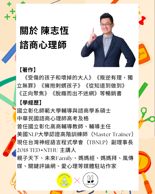 諮商心理師、暢銷教養作家陳志恆,將為您親身解惑!