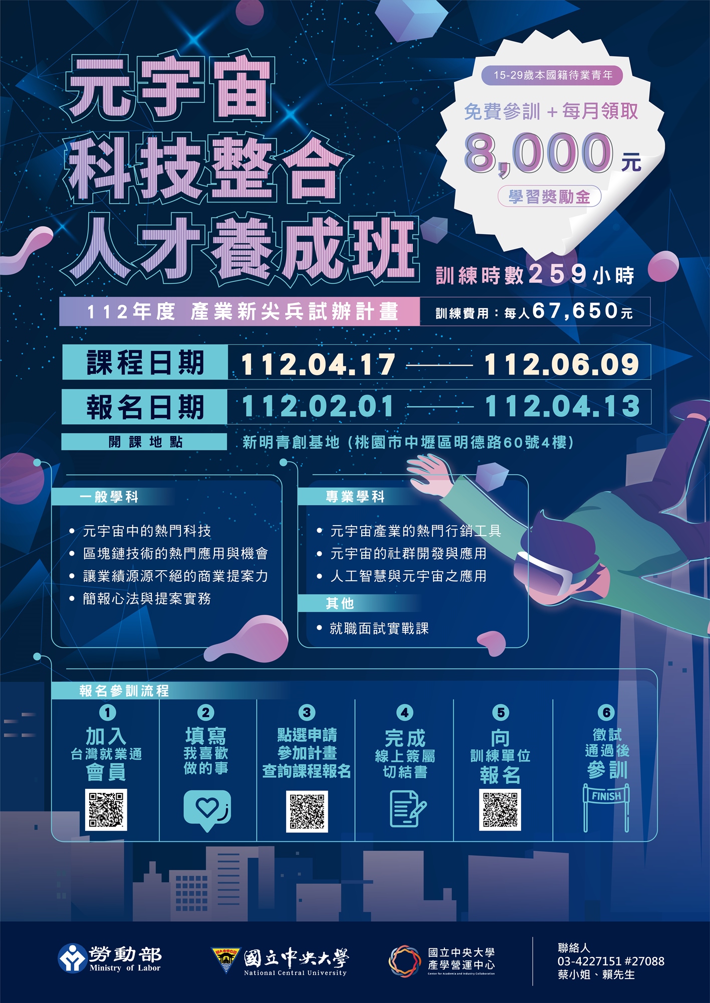 4. 課程洽詢:(03)422-7151分機27088 (蔡小姐、賴先生)。