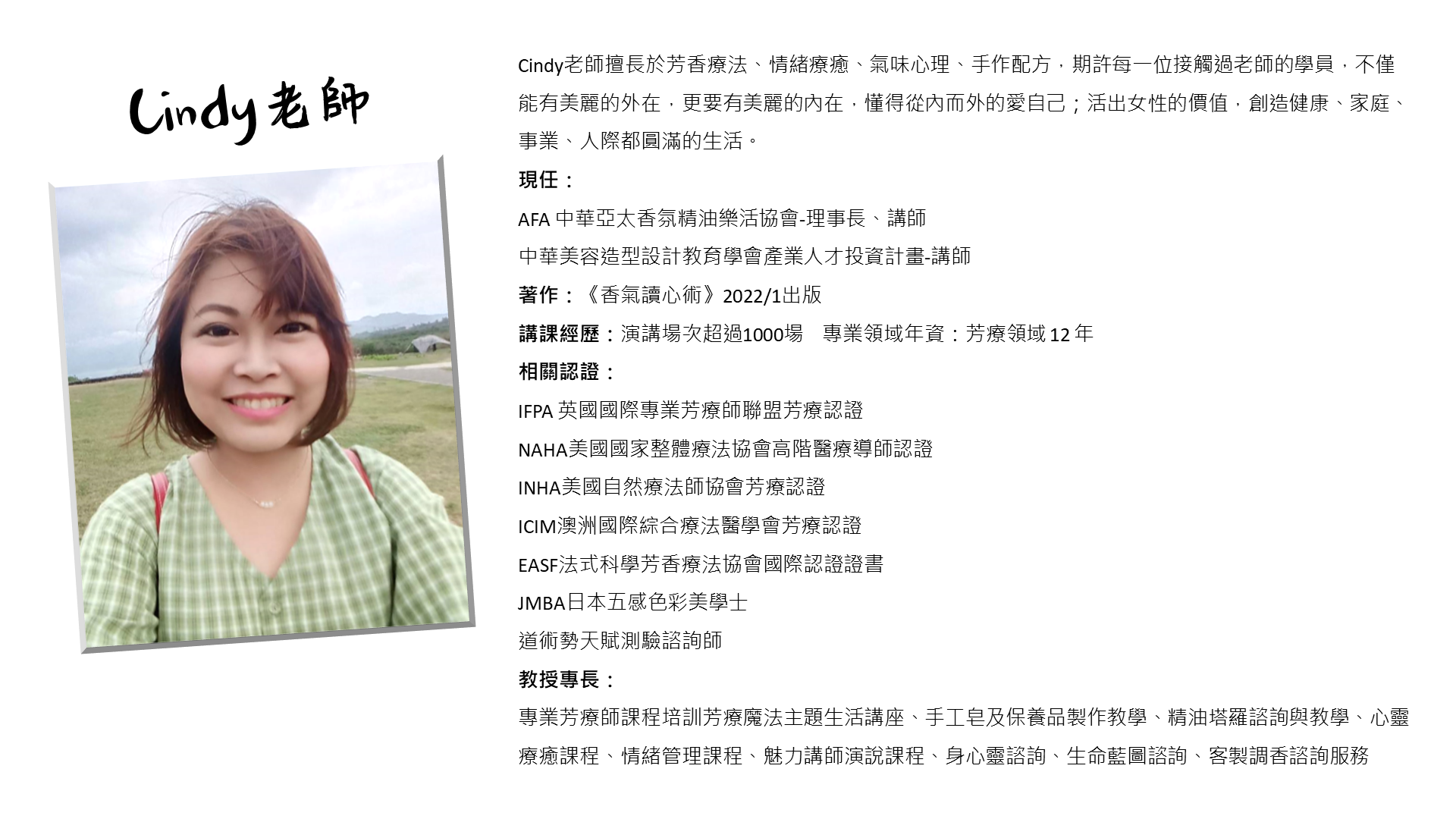 臉書:https://www.facebook.com/aroma.cindy/
