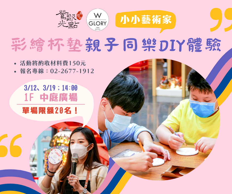 小小藝術家體驗!來到鶯歌老街怎能少了陶瓷藝術~自己的杯墊自己畫😍由本館品牌專櫃 @W Glory 威利家居燈飾 設計達人Willy現場教學指導,恣意發揮創意塗鴉彩繪,擁有獨一無二的陶瓷吸水杯墊~