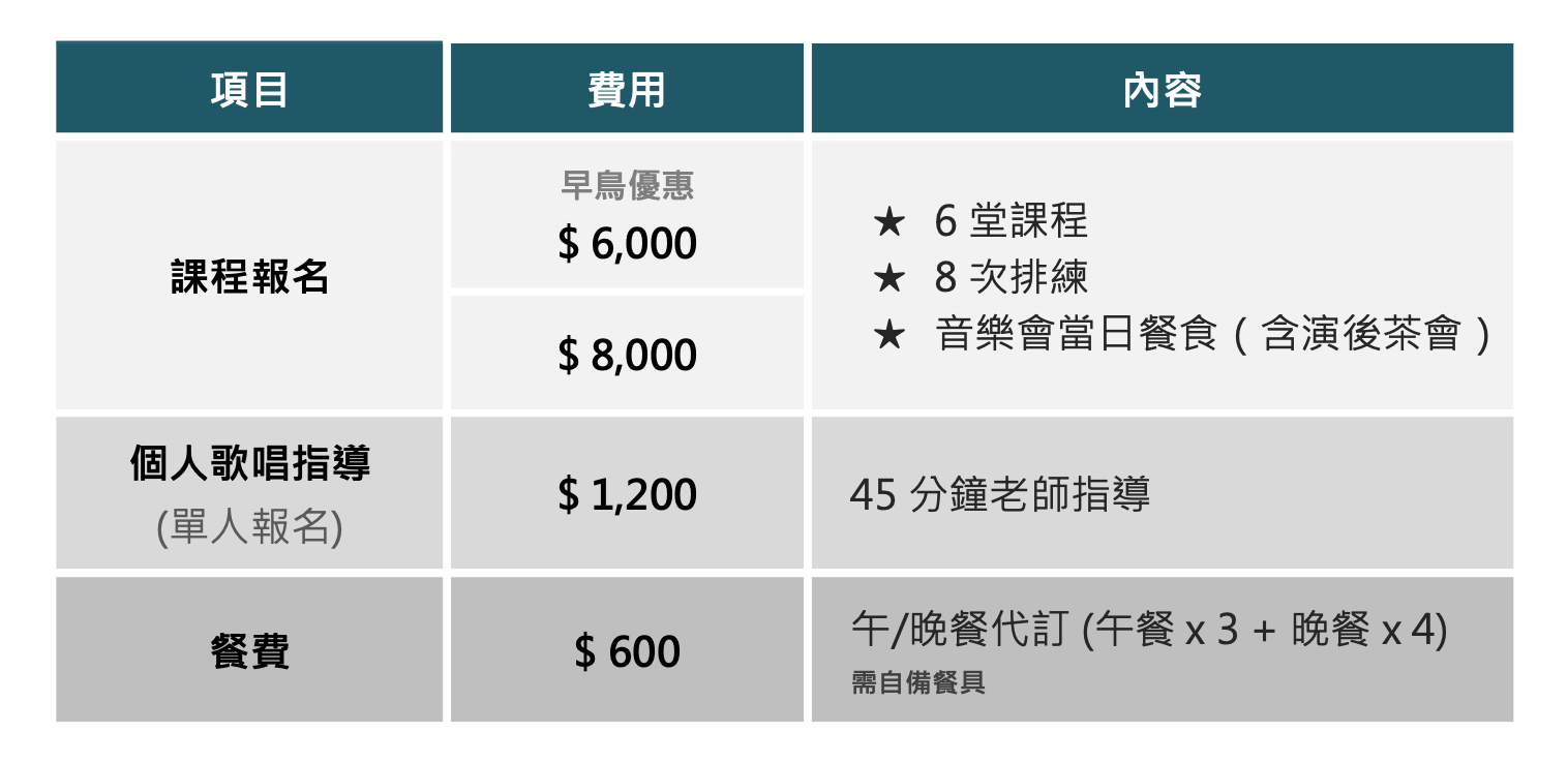跟隨著專業又有豐富排練經驗的合唱指揮,探索樂譜中的各項細節,進一步了解 Pop Choir 的樂趣。註:樂譜將於課程開始前一個月提供。