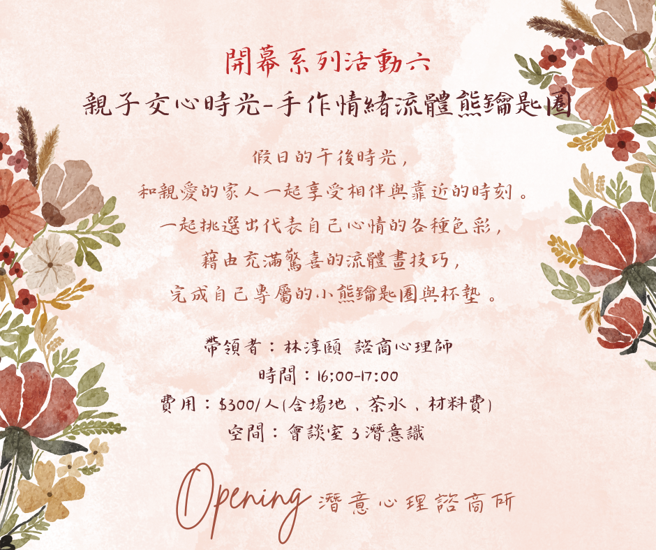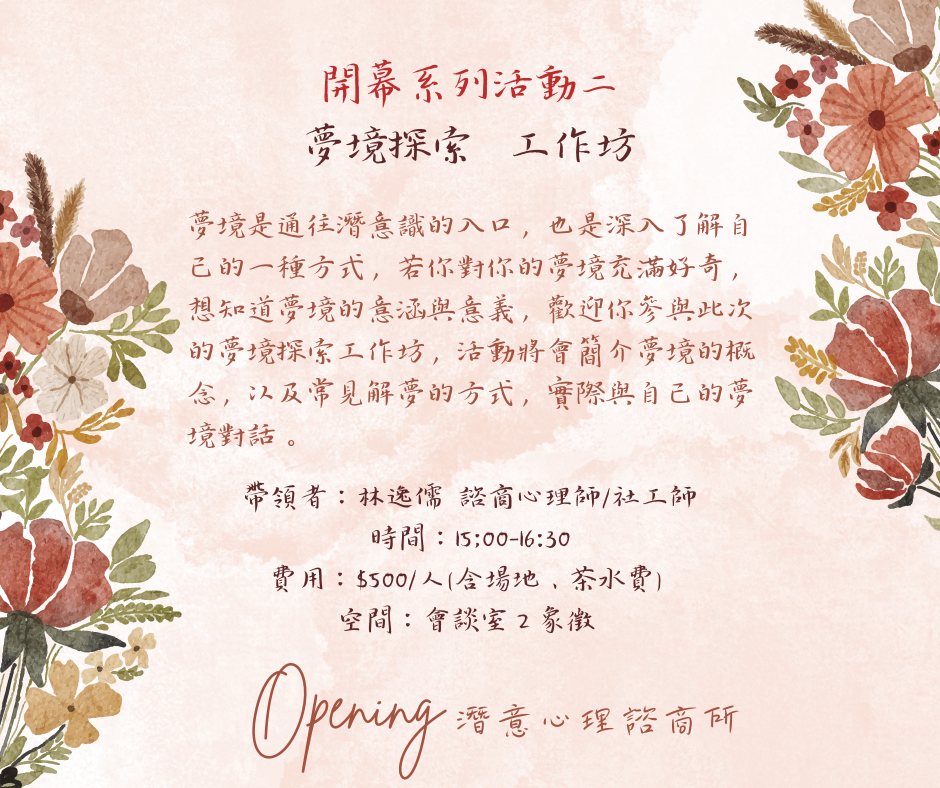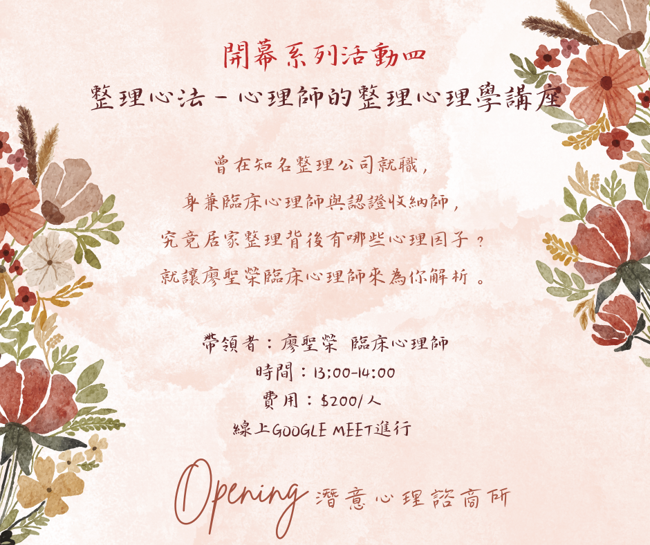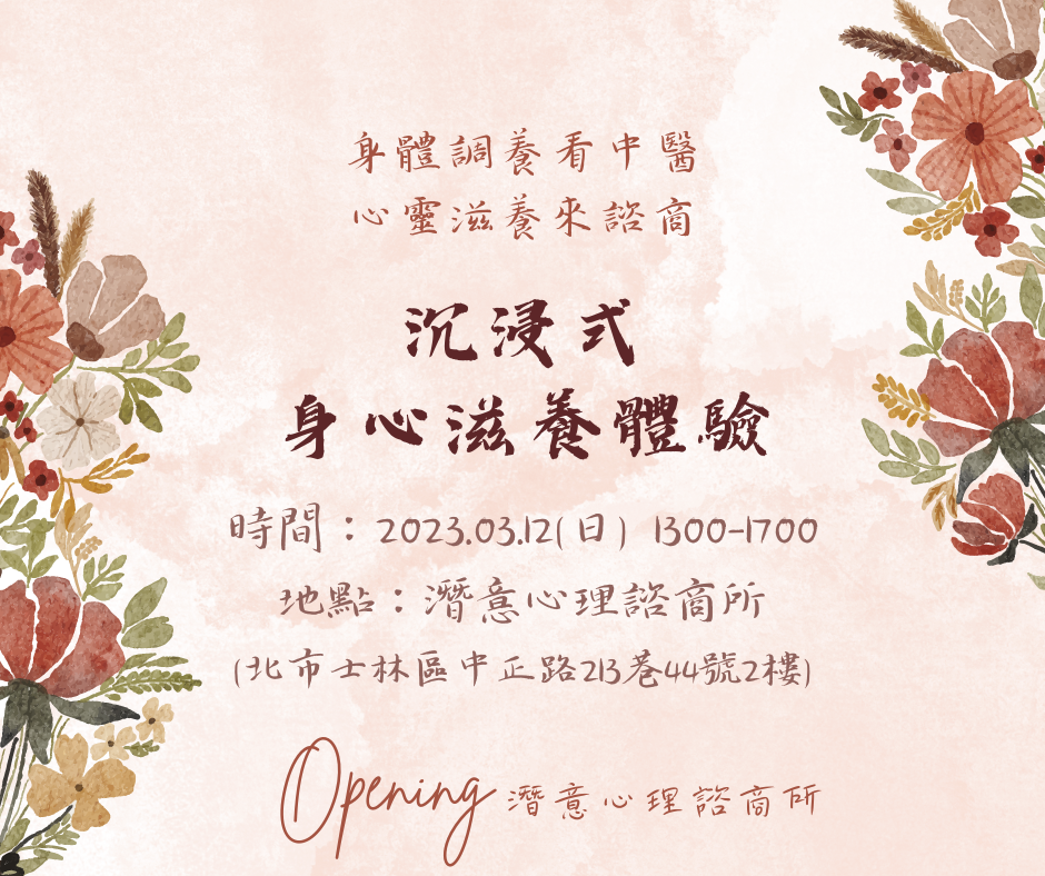 歡迎各位蒞臨潛意心理諮商所,很開心能在這裡開始我們的相遇 :)
