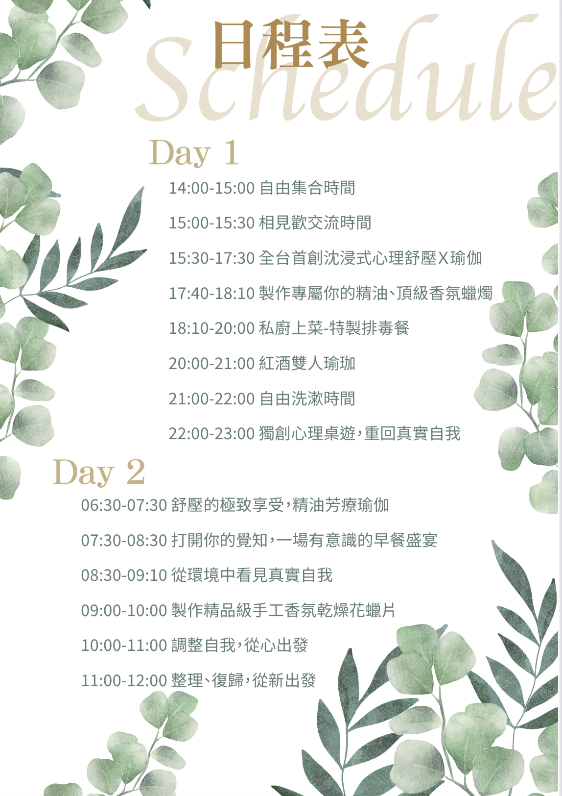 2天1夜的宜蘭療心營,穿插結合『沈浸式心理工作坊』與 『瑜珈課程』,