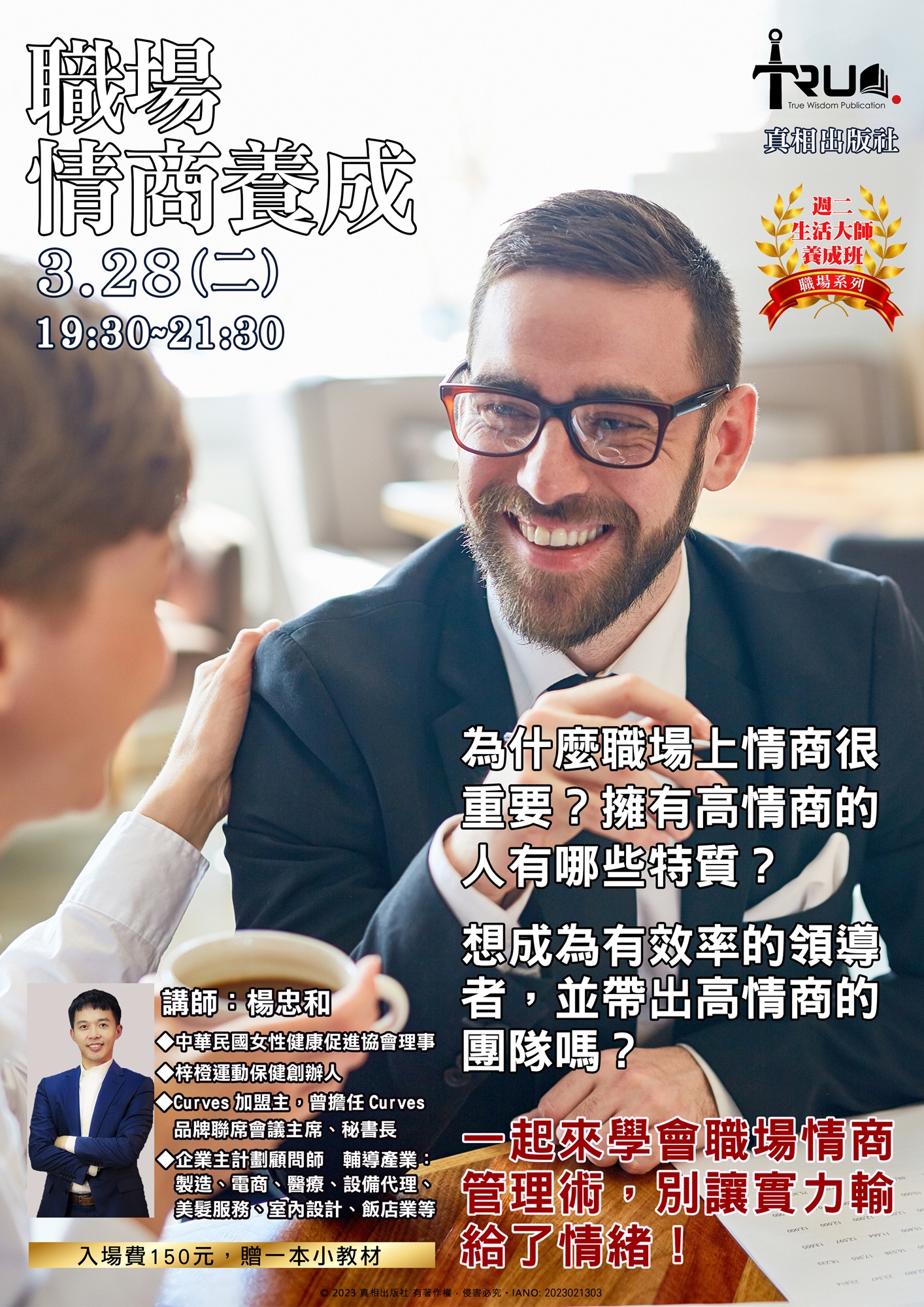 🤔什麼是情商?情商,簡稱EQ,心理学上指人控制自己情感、承受外来压力、把握心理平衡的能力。是重要的心理素质。美國企業界流傳一句話「智商使人得以錄用,而情商使人得以晉升!」那麼,上班族該如何培養、提升職場情商?將在此講座中解答!