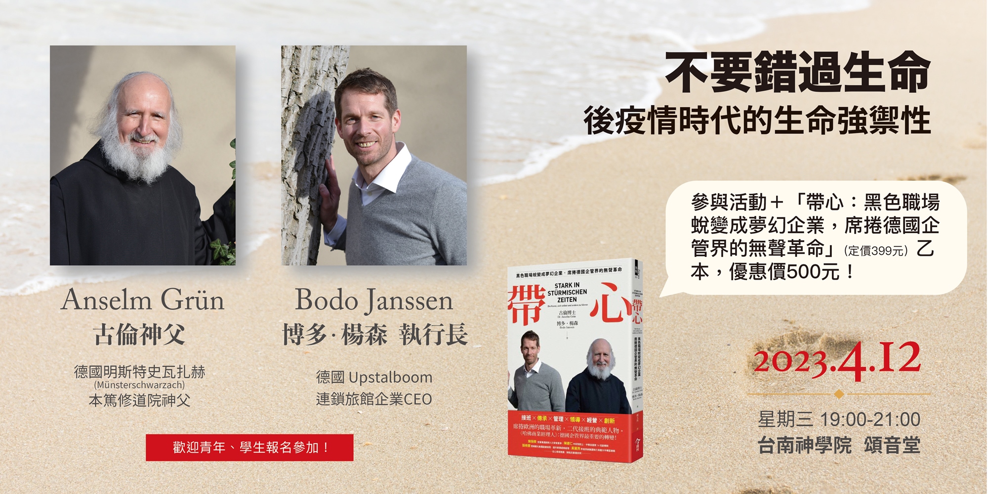 在每個生命階段都會碰到不同的境遇挑戰,我們或許會在哪裡卡關了,而使生命動彈不得。這場演講希望可以啟發各年齡層的朋友,不管是青年、中壯年、 銀髮,意識到每個年齡的心靈與情緒特 質與困境,進一步提出具體建議,讓大 家勇於生活,讓生命精彩!