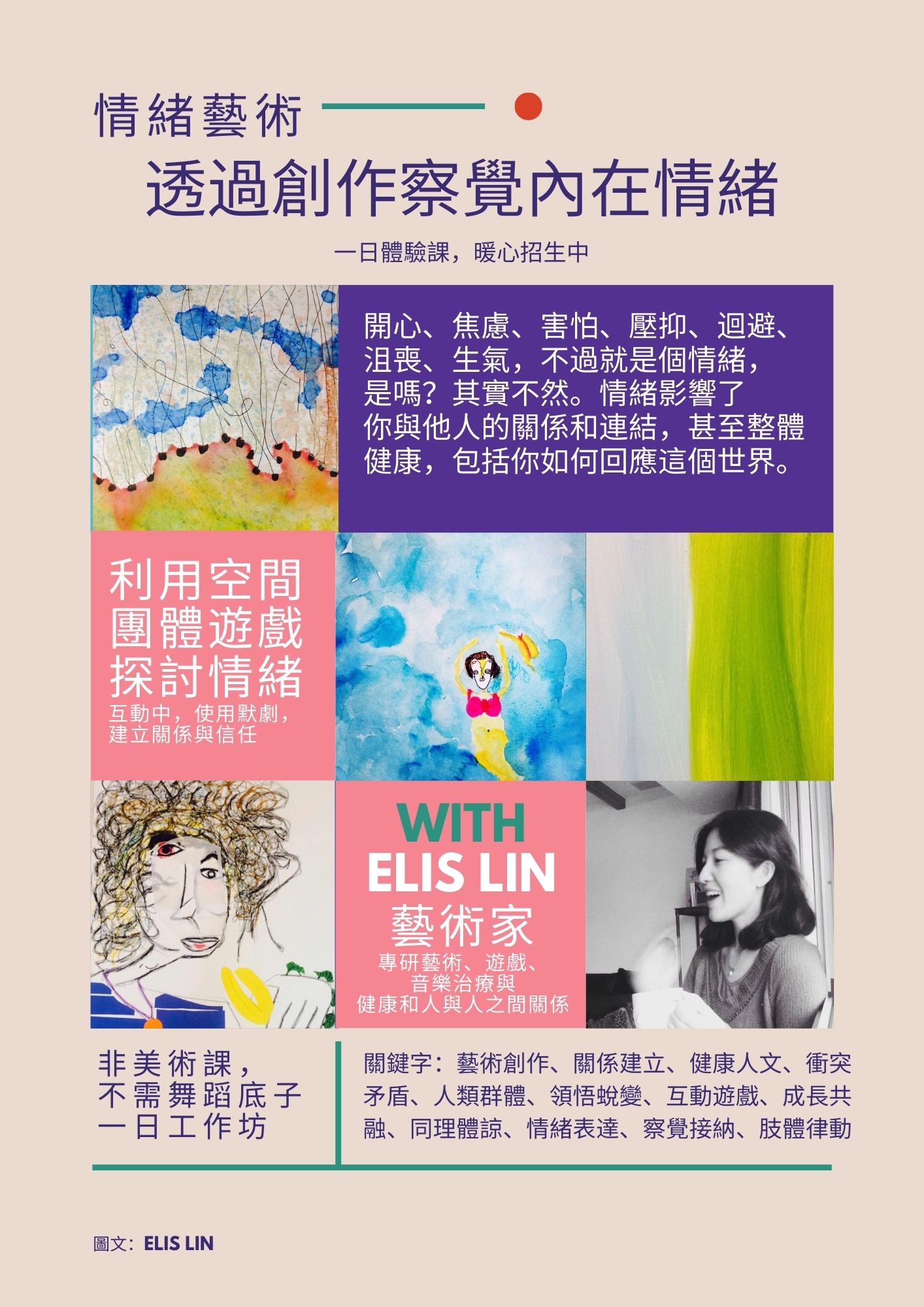 「即使忙碌,也要情緒藝術」體驗課,藉由創作與他人的連結來發展社交關係和感受的經驗。我們會在溫暖、安全的空間中,建立群體力量、察覺情緒、接納衝突、互動中,與成長共融、建立信任、提升同理、品嘗蛻變。因為有你才有群體,有了群體,我們需要關係與連結維生,因為這是人類心靈上的基本求生需求。「即使忙碌,也要情緒藝術」體驗課,暖心歡迎您。