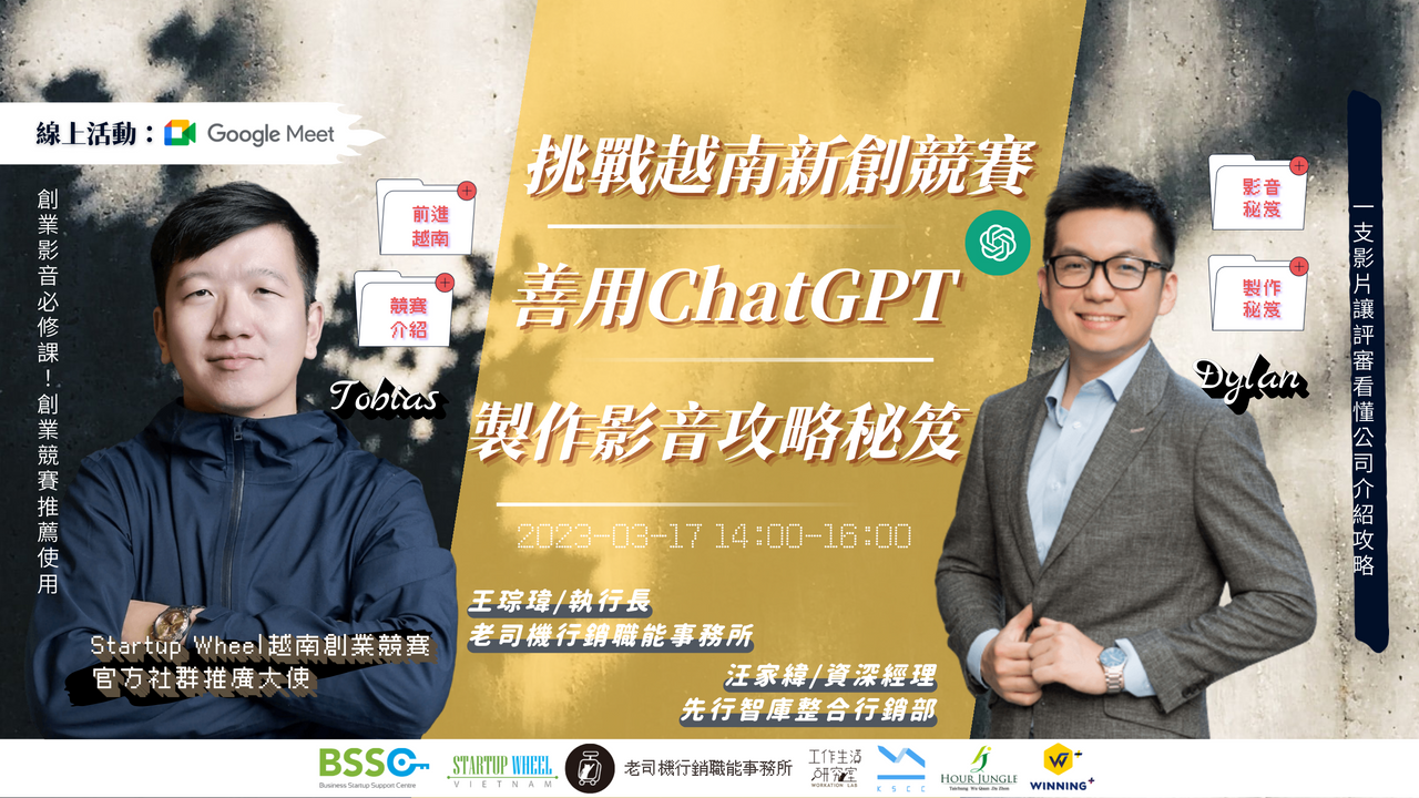 因此,本活動提供了一些實用的攻略秘笈搭配近期火熱ChatGPT,幫助你提高競賽獲勝的機會。這次活動也會提到2023年越南國際創業競賽Startup Wheel競賽的概況、獎勵、參賽流程和注意事項等信息,幫助你了解越南新創企業在競賽中,如何快速展示公司重點。最後,活動還會介紹越南市場的發展趨勢和未來前景。