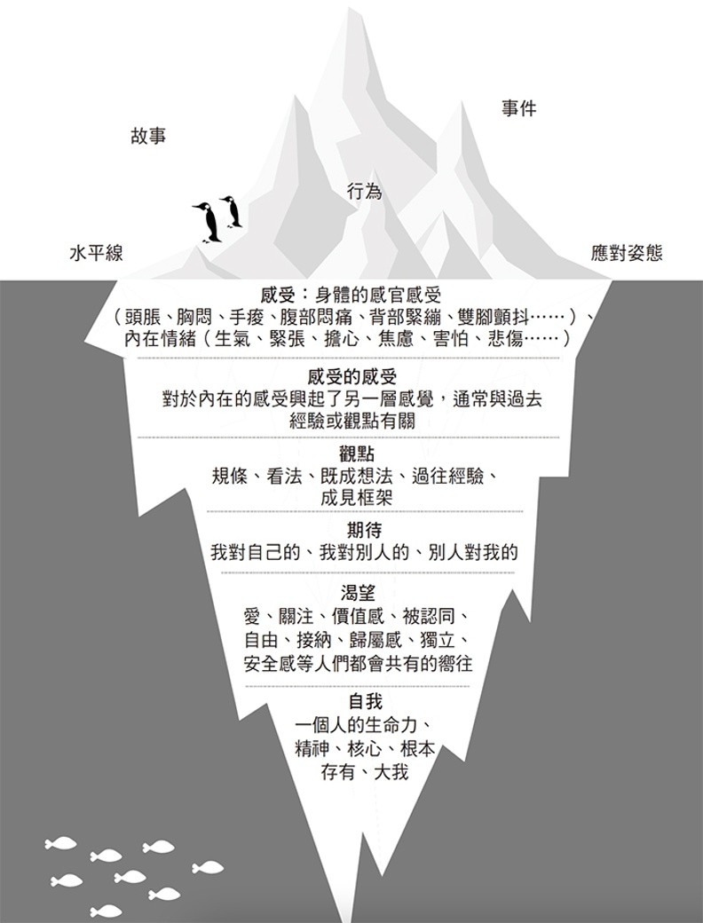 - 冰山理論的基本原理和應用方法,以及如何將其應用於對話中。
