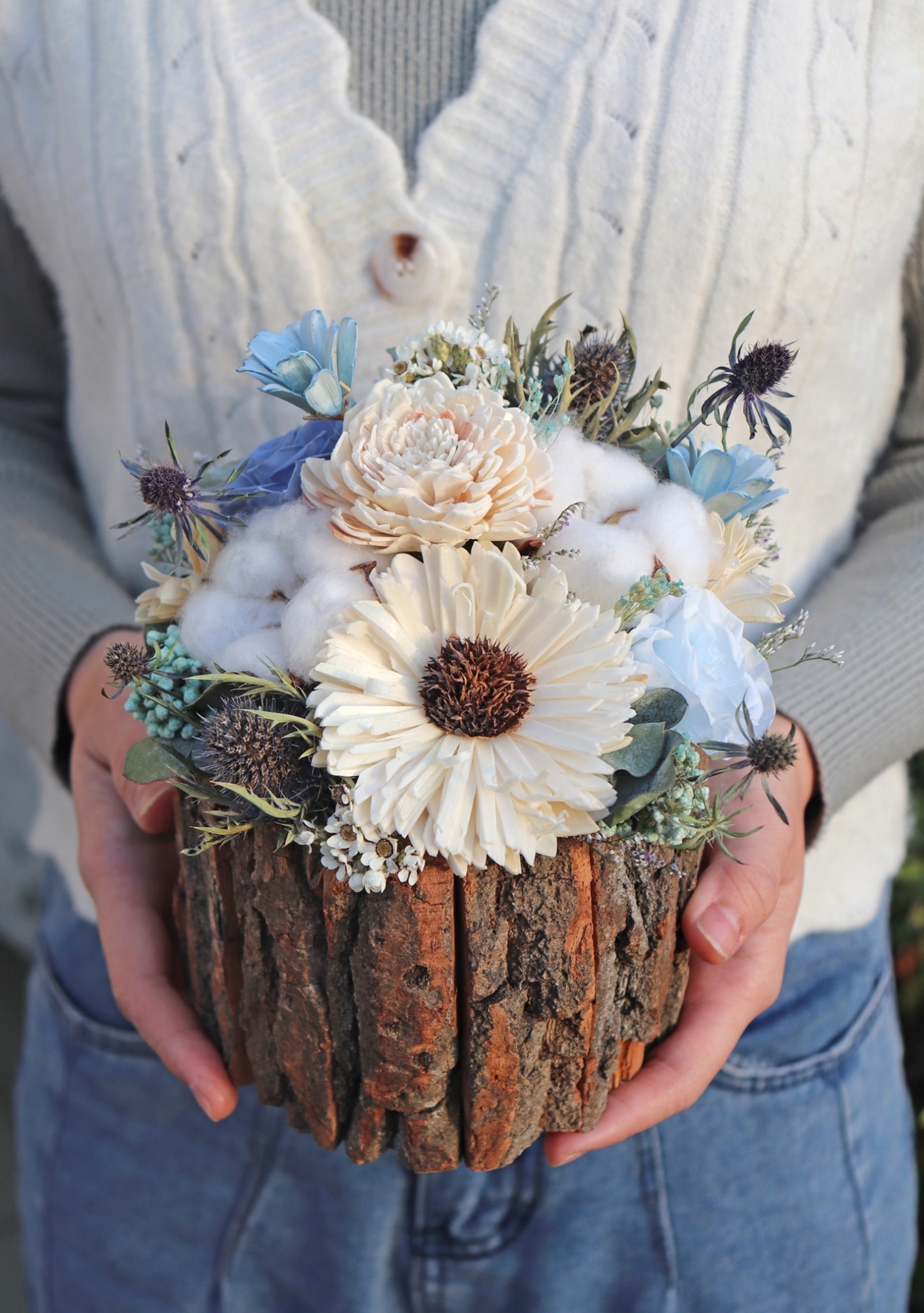 加上木質調的盆器呈現不同於一般盆花的質感!