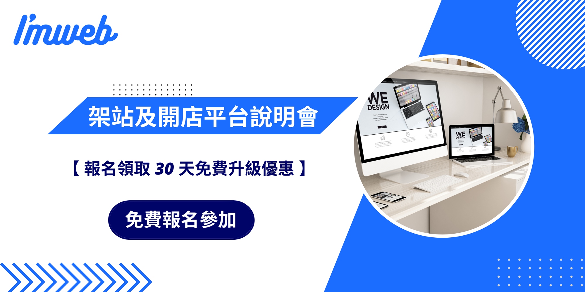 免費報名 Imweb 線上說明會,就能獲得 30 天免費升級方案優惠
