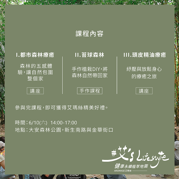 艾瑪絲森活療癒課與環境友善種子合作,每月一堂課,