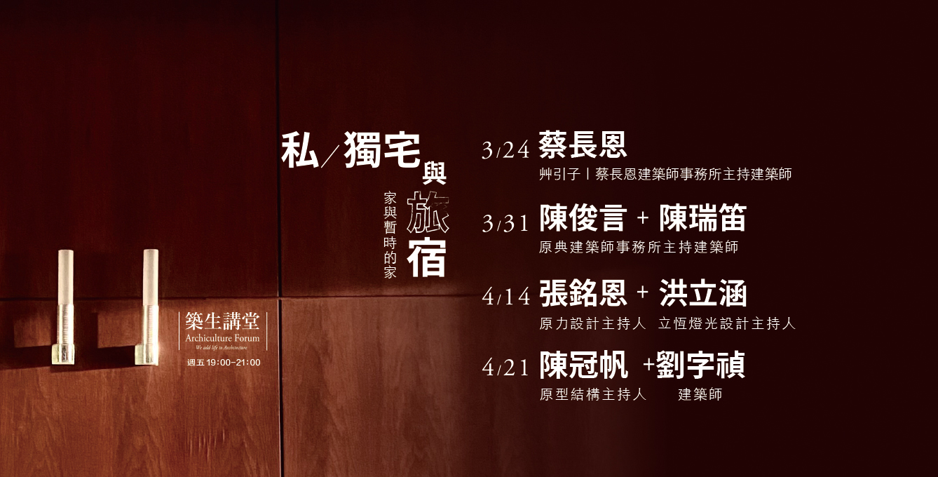 本次演講將解構【星屋】的設計理念、如何藉家屋的格局建構居者與天地萬象的關係。亦特別邀請為【星屋】設計燈光、「2020台灣光環境獎」得主洪立涵設計師解說住宅燈光設計的要點。