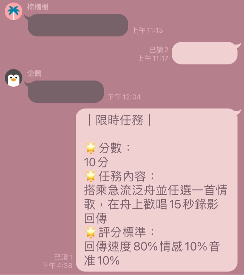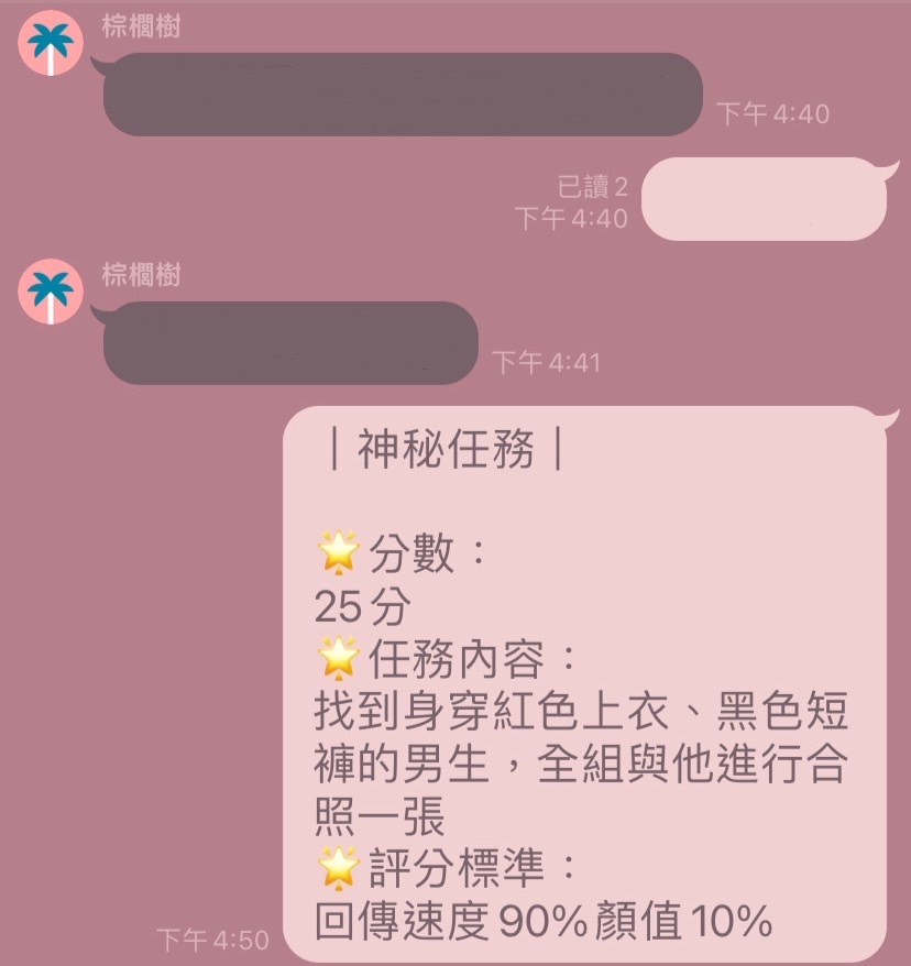 活動開始後也會不定時傳送神秘任務資料、分數及評分標準