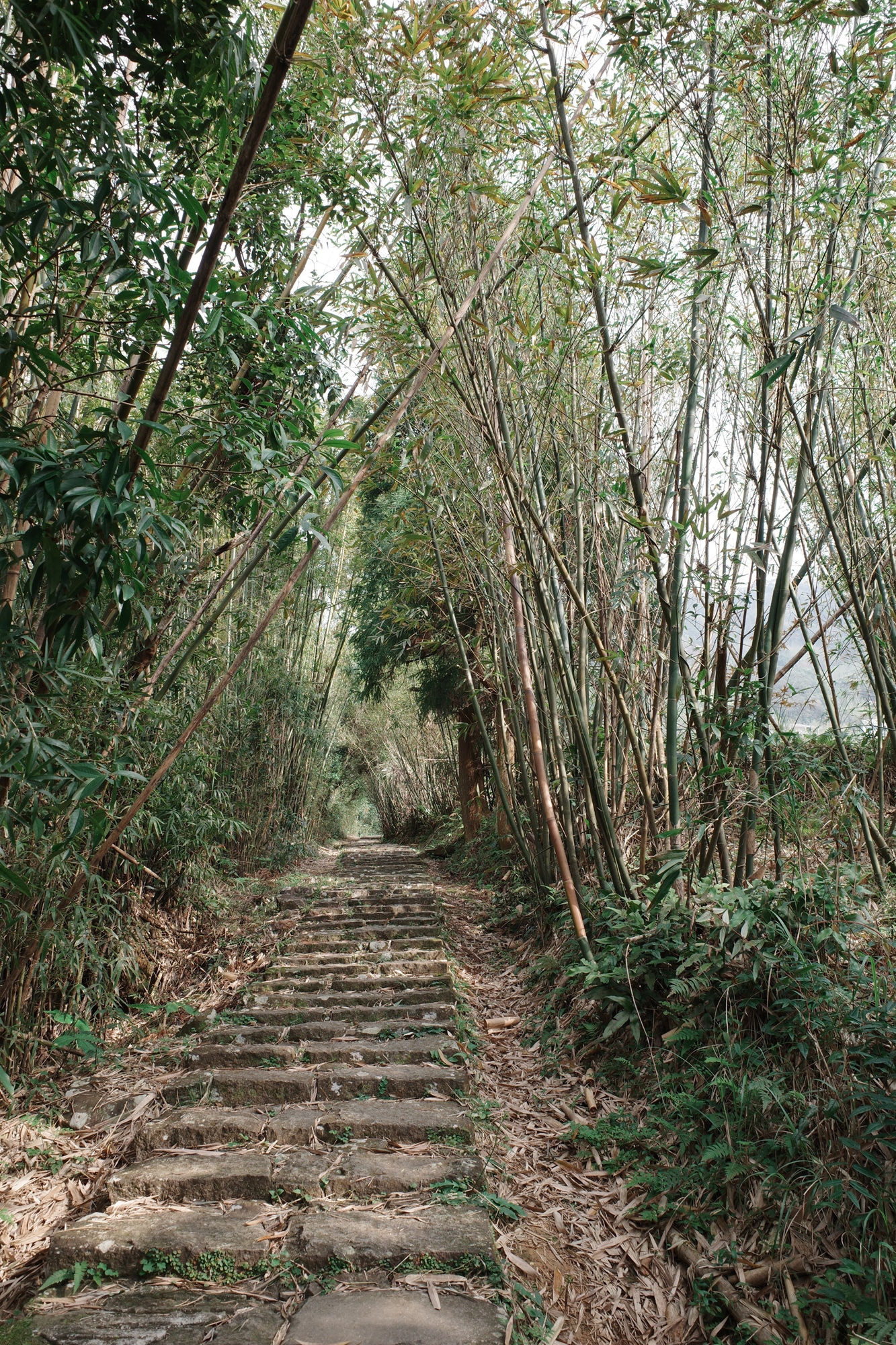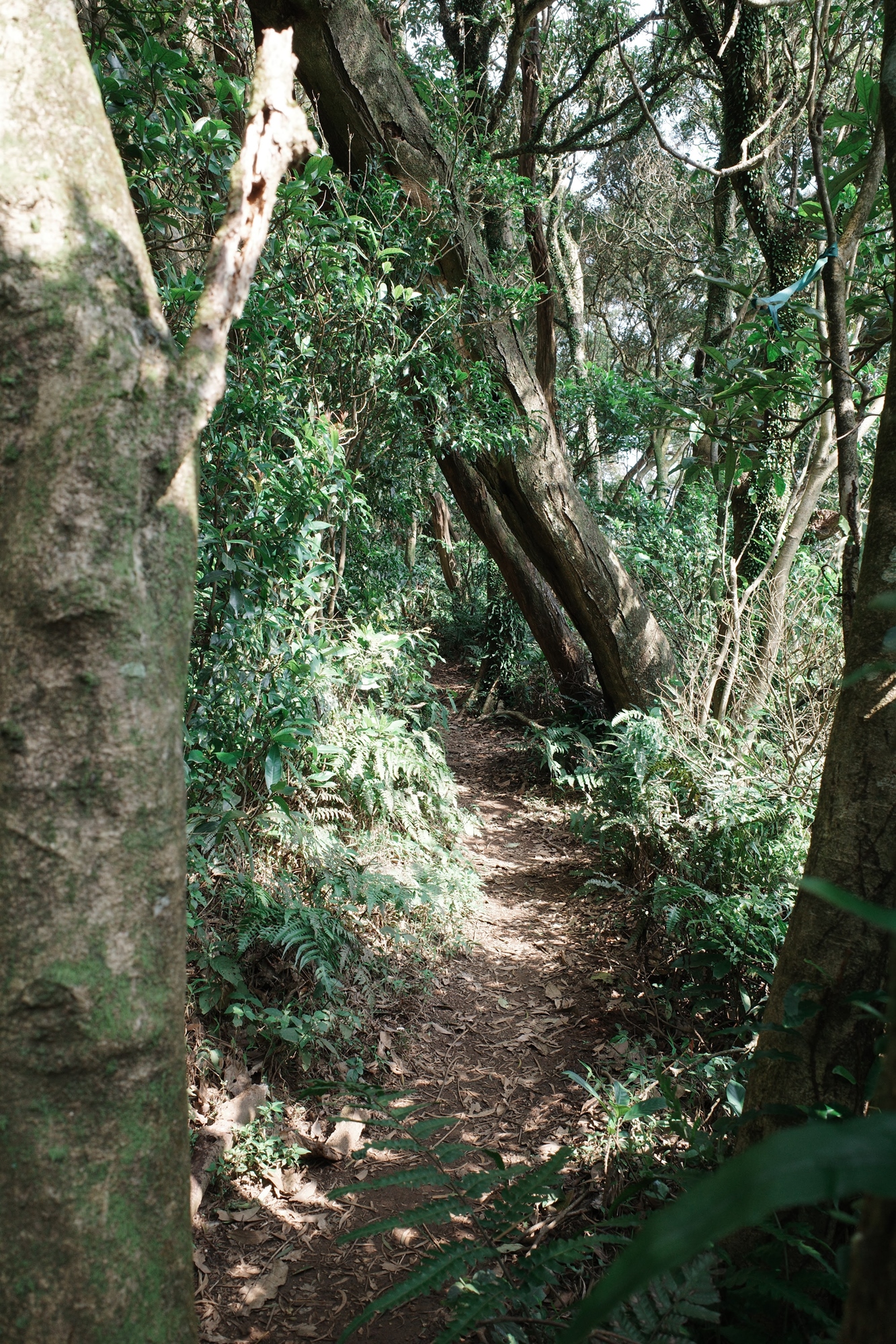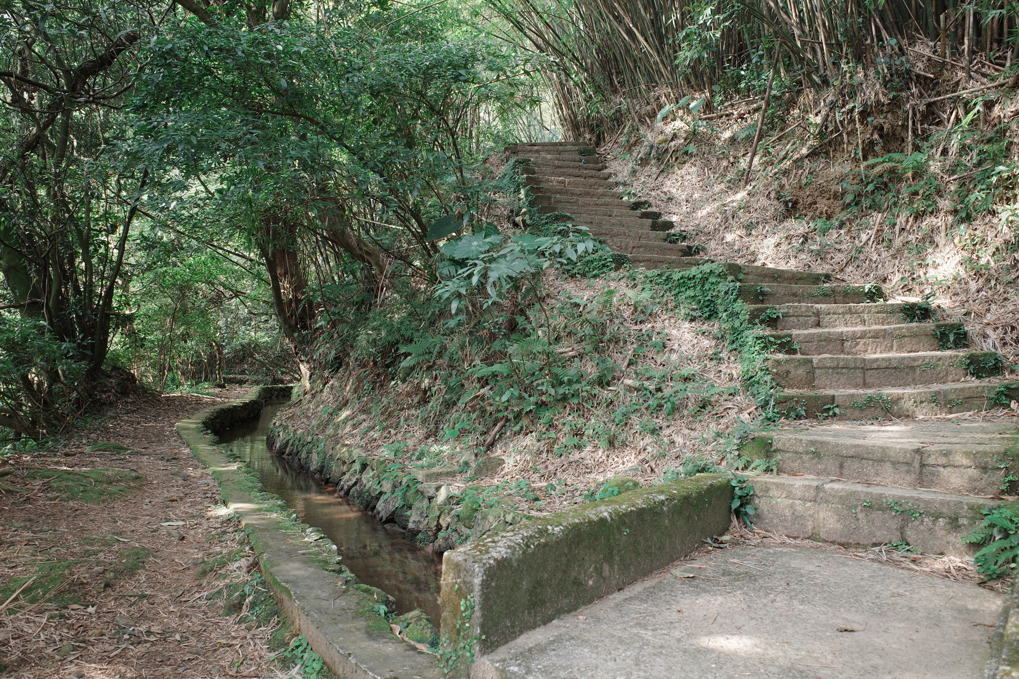 自水圳工事的坪頂步道拾級而登,走上瑪礁古道的原始泥土山稜,