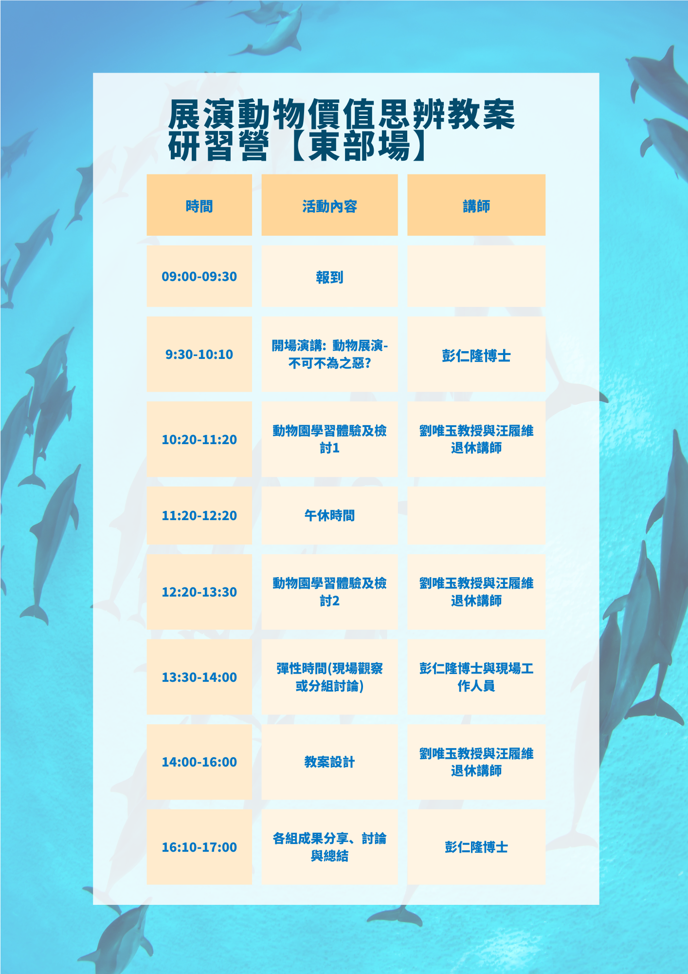 ∎本研習營提供教師研習時數(並非動物展演業者上課時數!),須完整簽到及簽退。