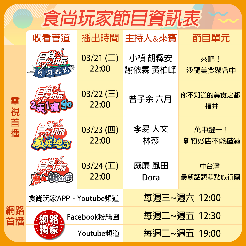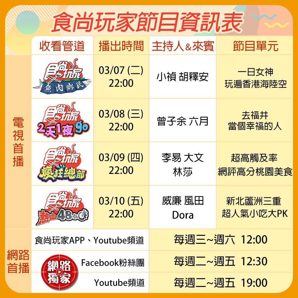 晚上19:00請鎖定食尚玩家官網、Youtube頻道