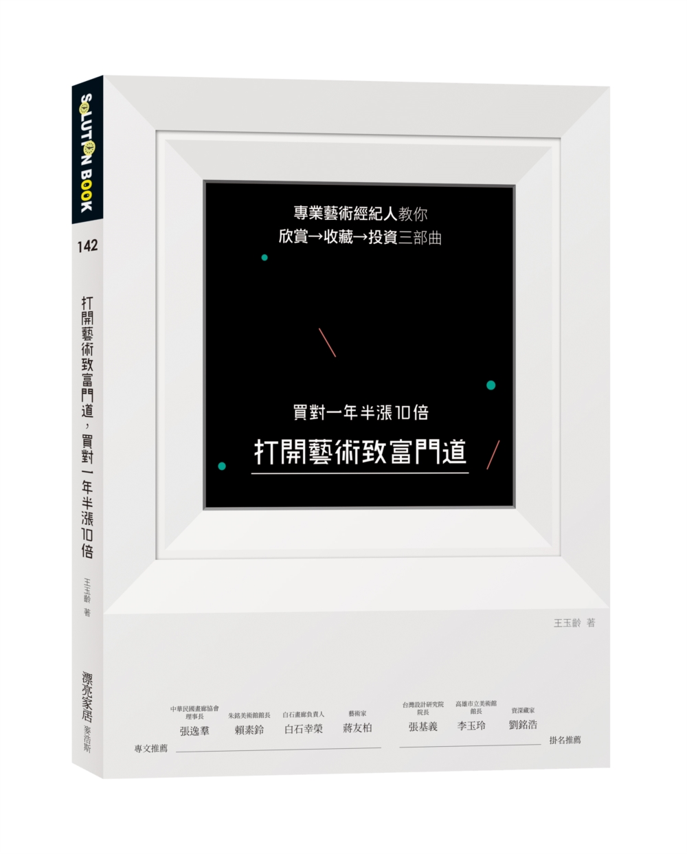 藝術經紀王玉齡,集結30多年來在藝術經紀與收藏投資領域的經驗與觀察,讓零基礎的新手也能建構藝術收藏投資的世界觀,並歸納出「欣賞→收藏→投資」三部曲,先學會欣賞藝術,從中找到樂趣以及自己最想收藏的作品,才能精準地掌握它的價值。