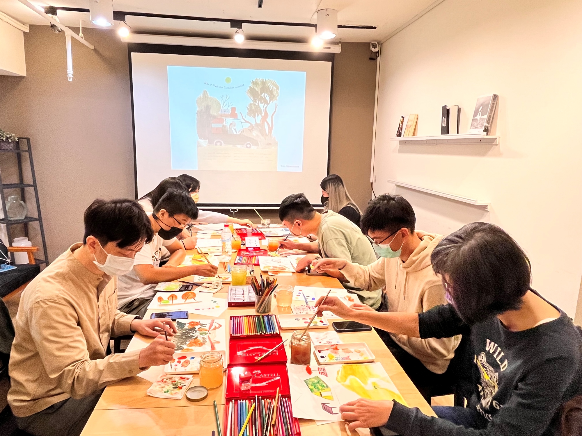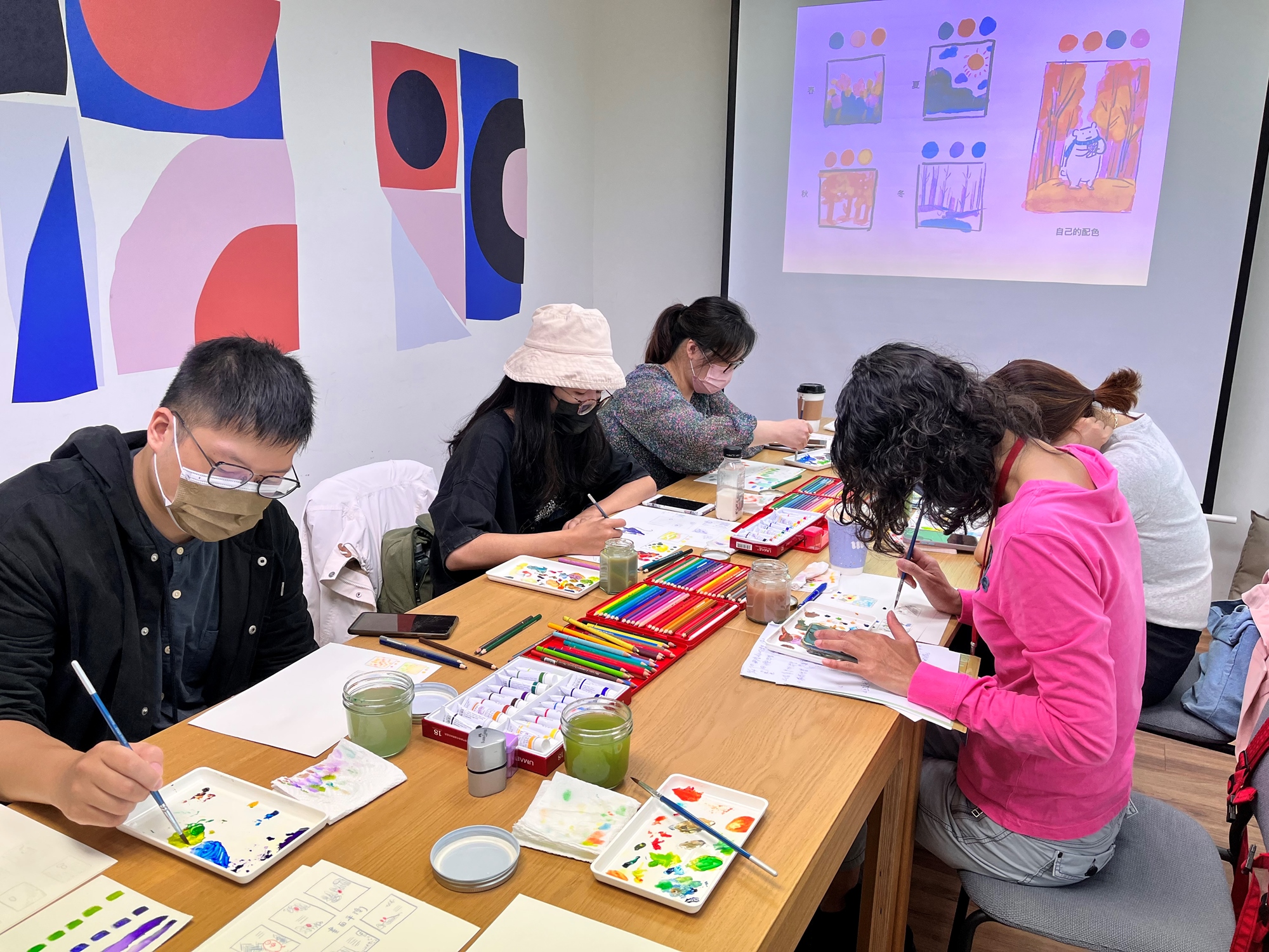 主辦單位會準備色鉛筆、透明水彩顏料、水彩筆、調色盤、鉛筆、紙張等媒材