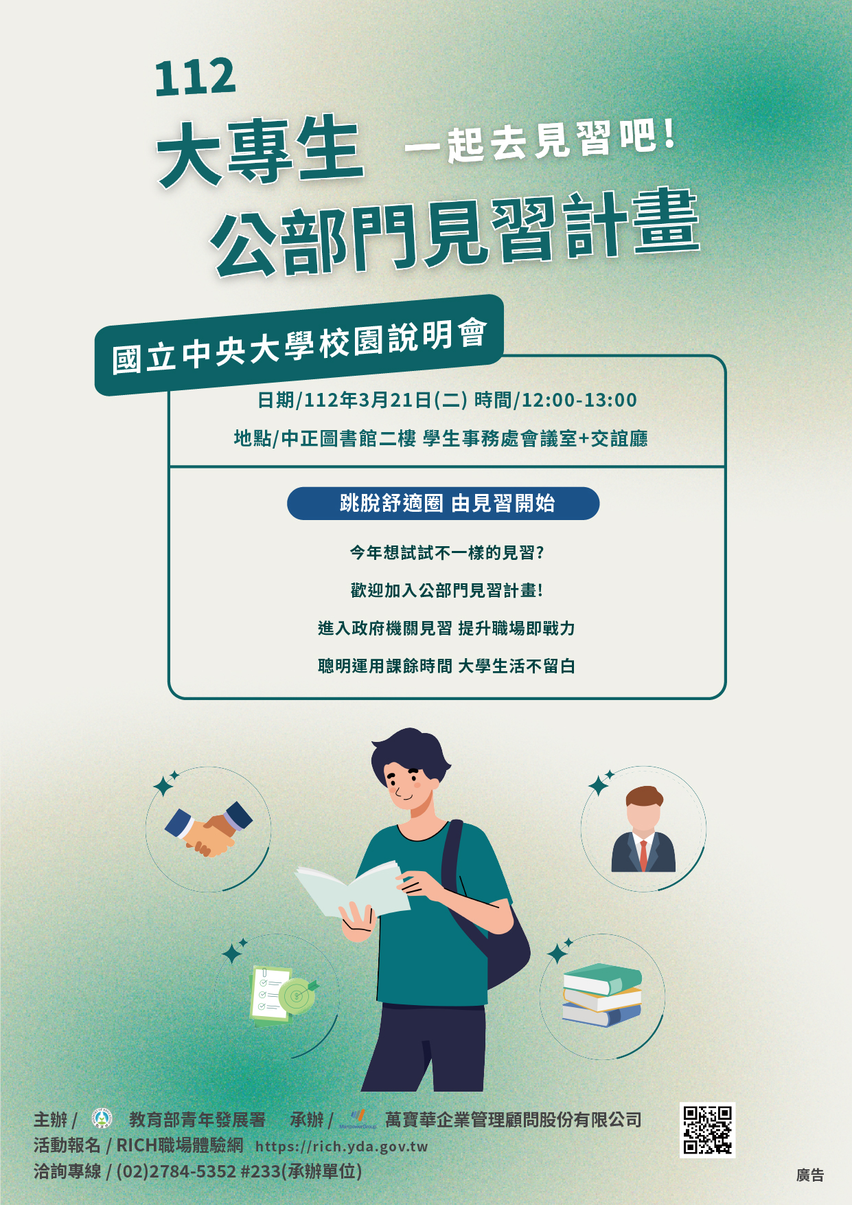 【112年度大專生公部門見習計畫】校園說明會 - 國立中央大學