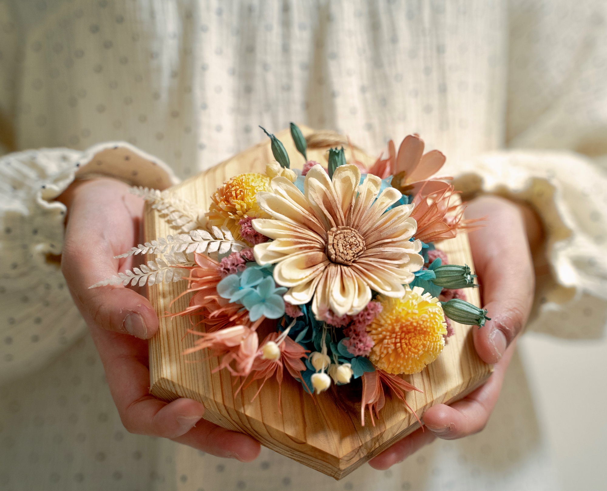 ☑️ A5:使用的花材為永生花與乾燥花,良好狀況保存下約可存放一年。