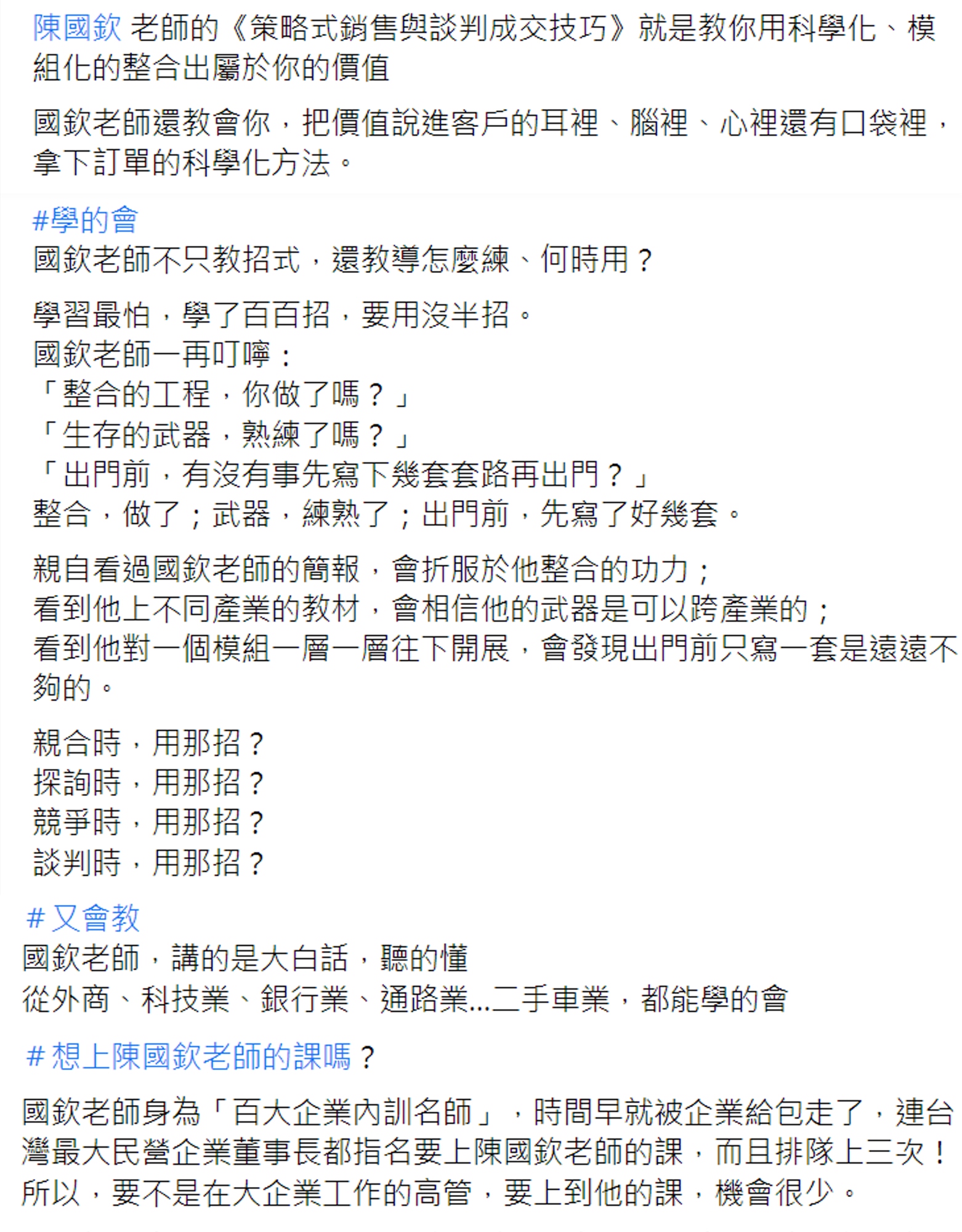 Q1.國欽老師的銷售課跟市面上的銷售課有何不同?