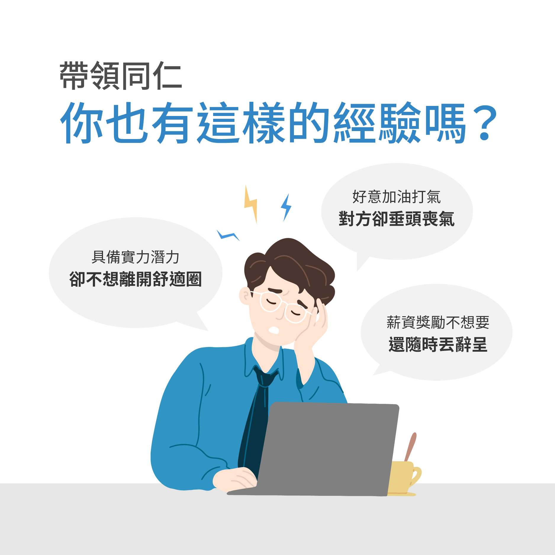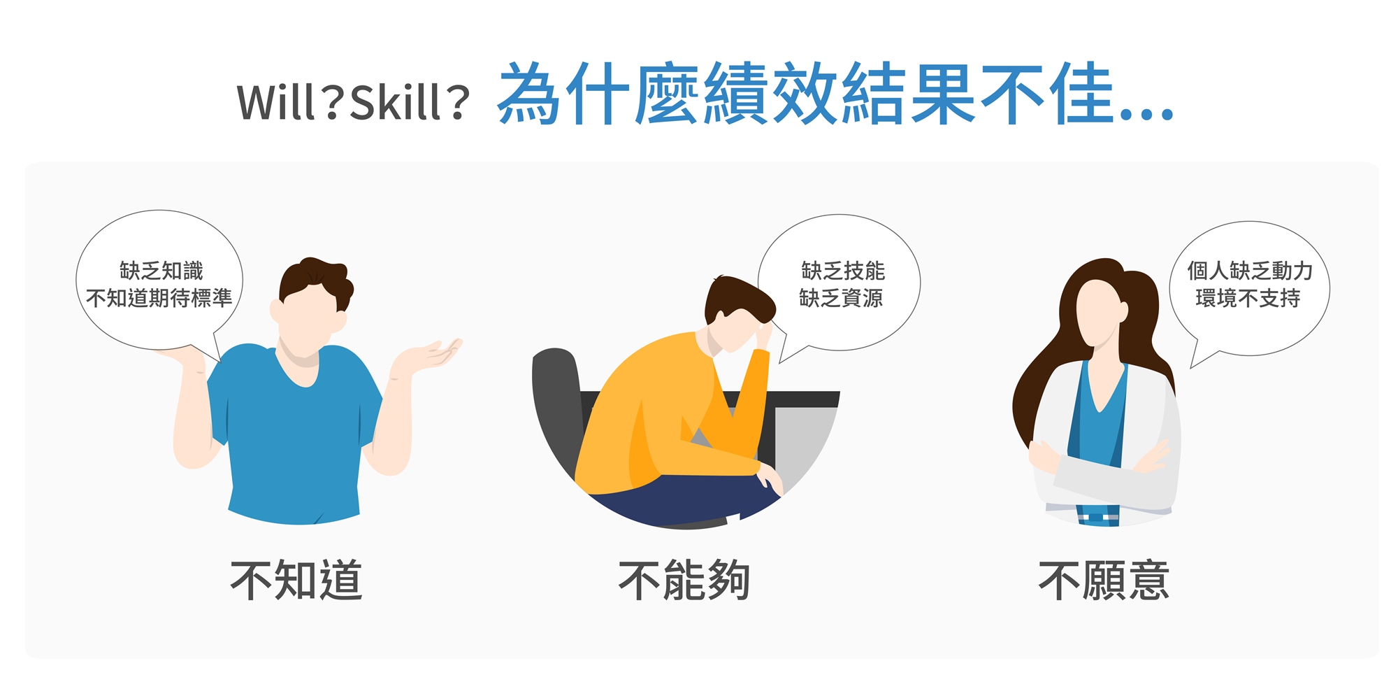 的確,有些同仁無法把事情完成,和能力不足有關,但有些知識能力具備的同仁卻不願積極投入,也缺乏嘗試改變的意願。