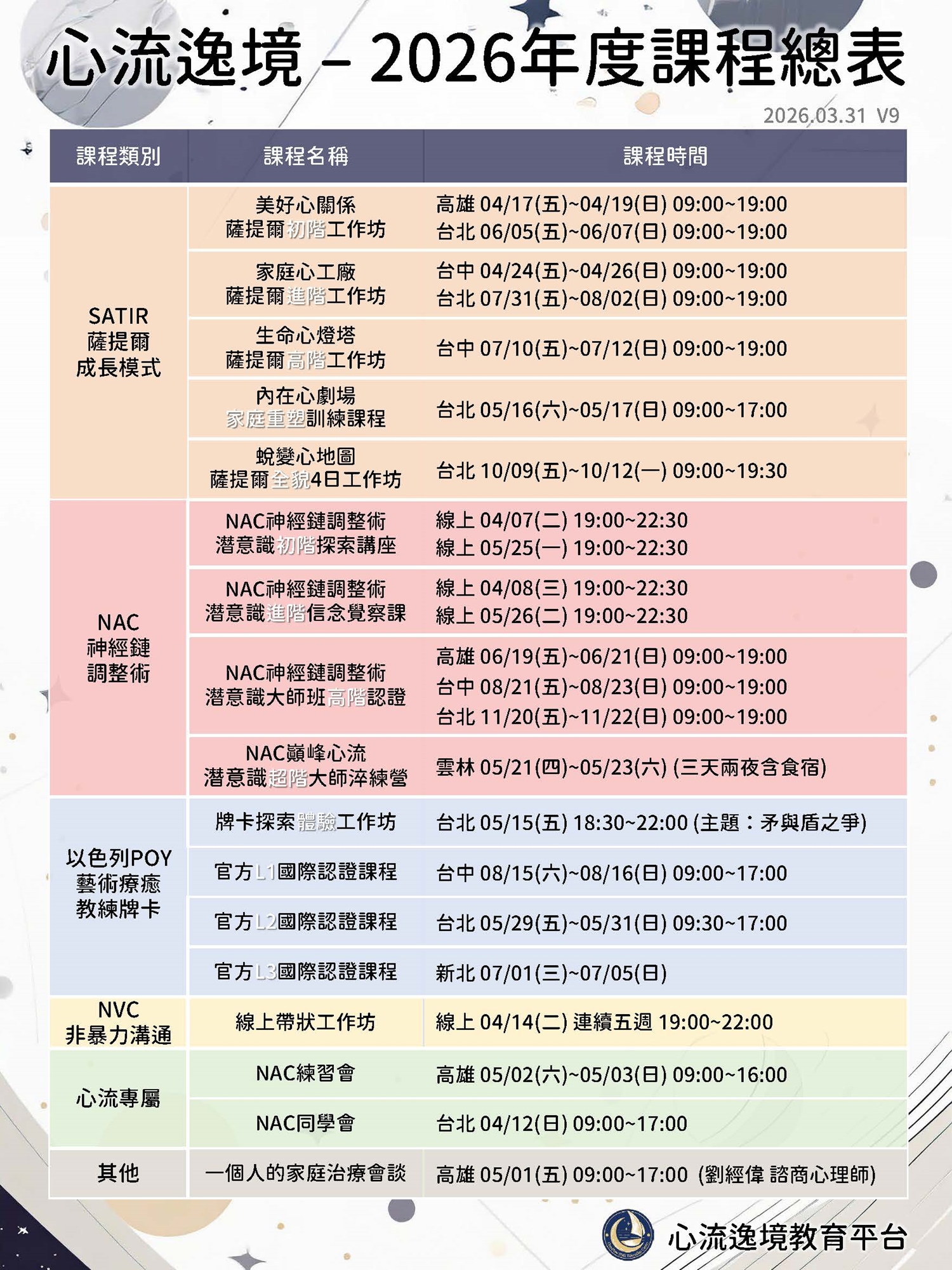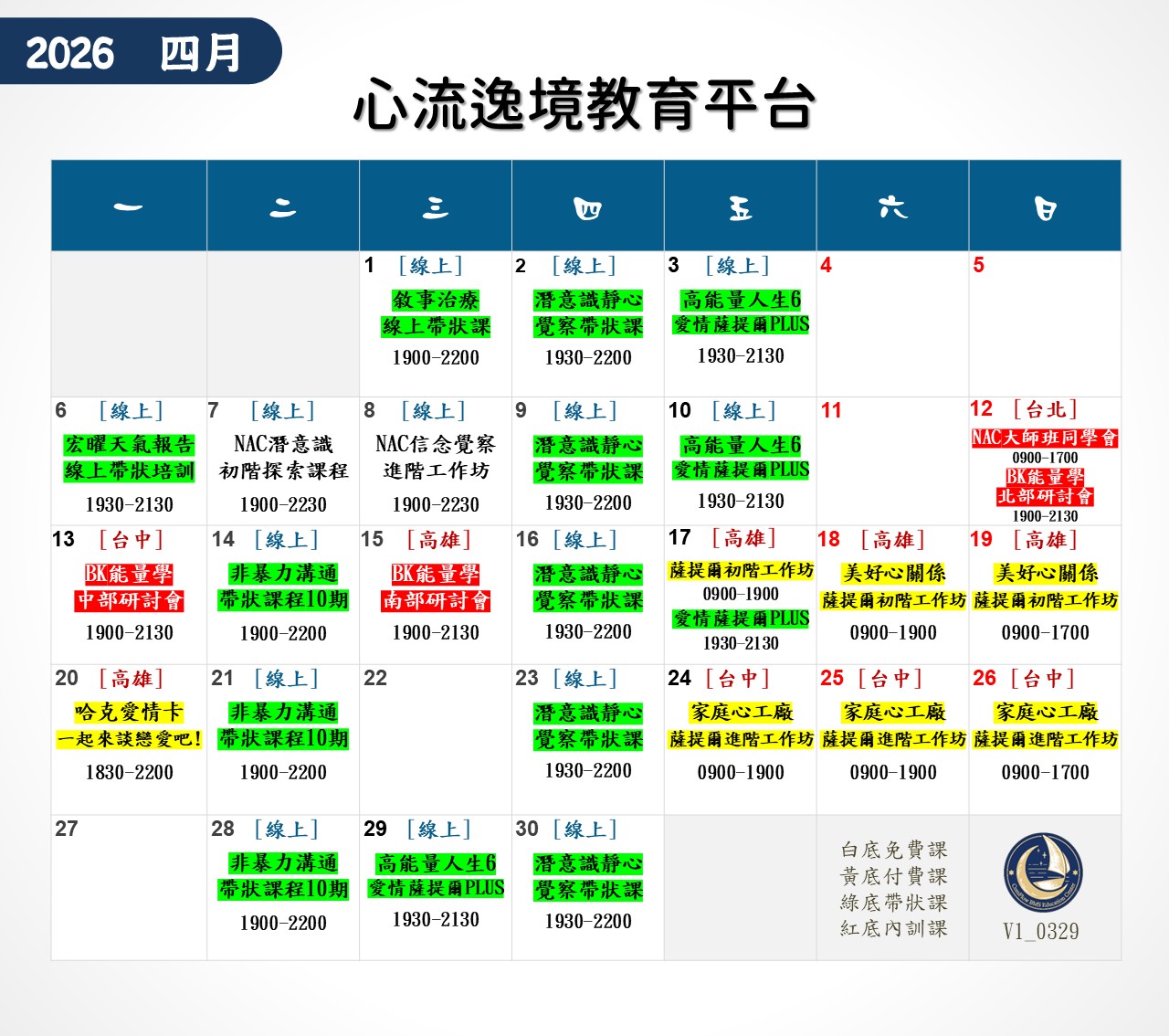 ❤心流逸境教育平台-近期課程表❤