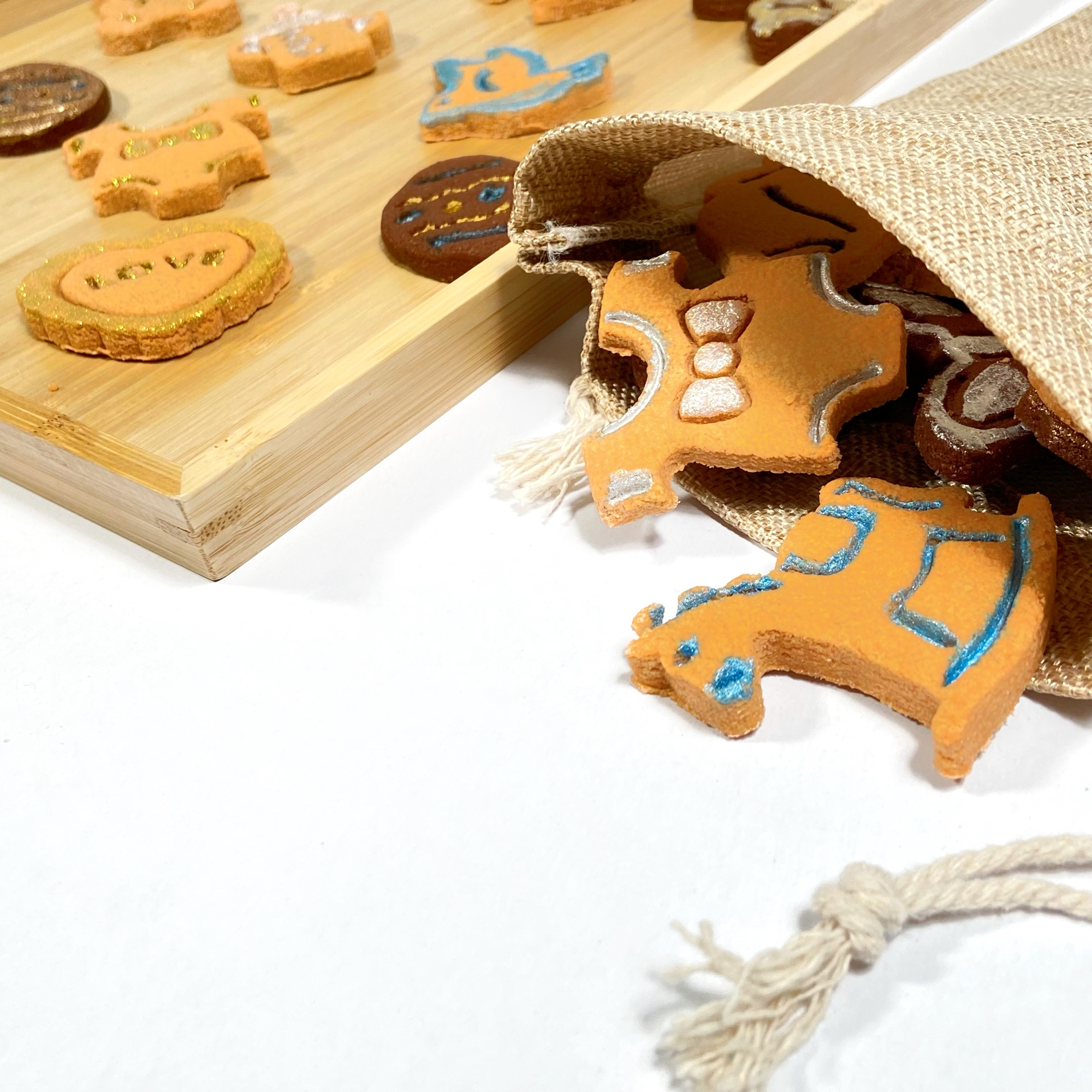 像烤餅乾一樣的泡泡浴,不只造型多變,還能自由上色,在水中搓揉起泡後,能看到色彩斑斕的閃粉喔!