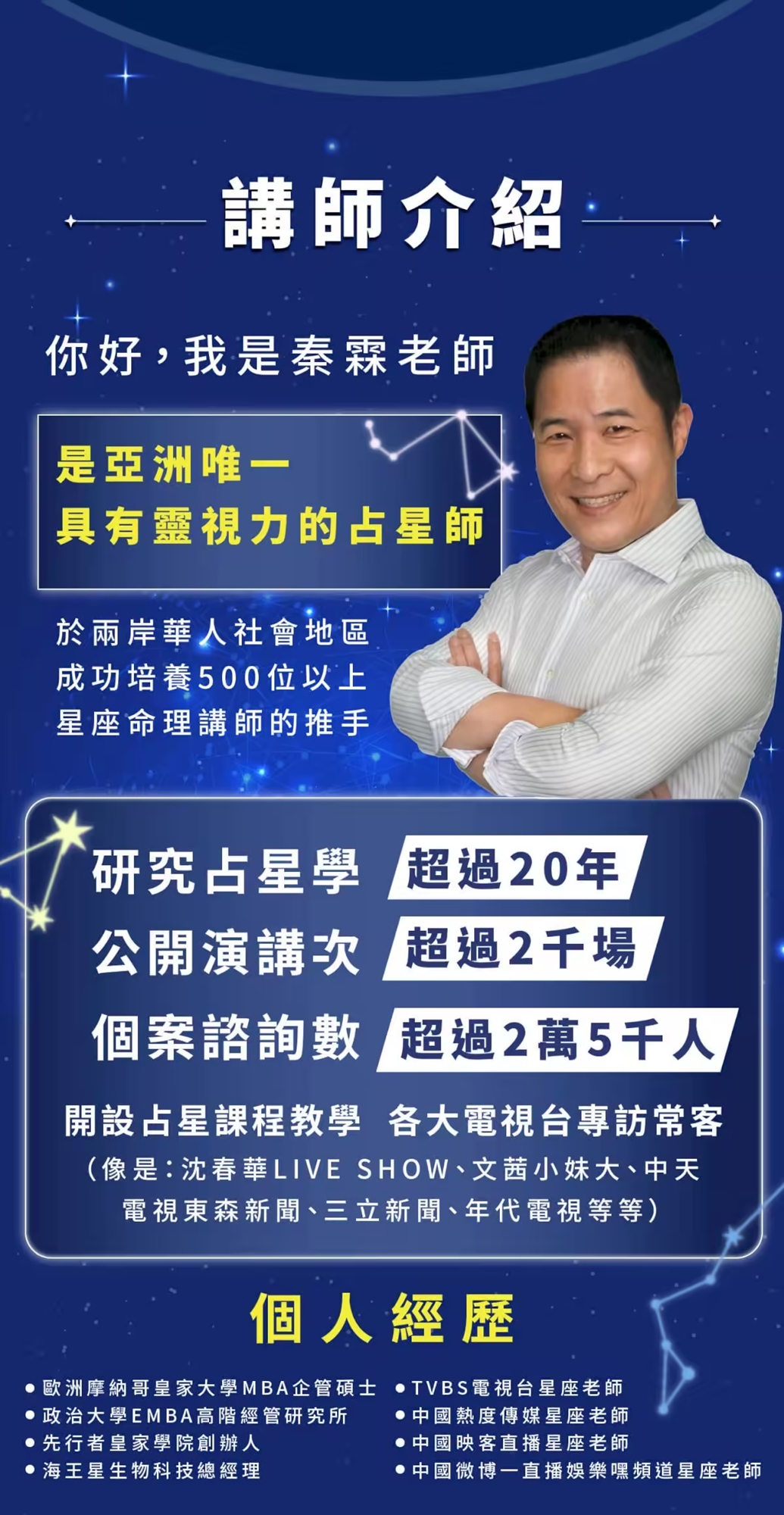 4、亞洲唯一靈視(陰陽眼)占星師,課程中能對應學生命盤,與同學的靈魂對話,找出前世今生的課題