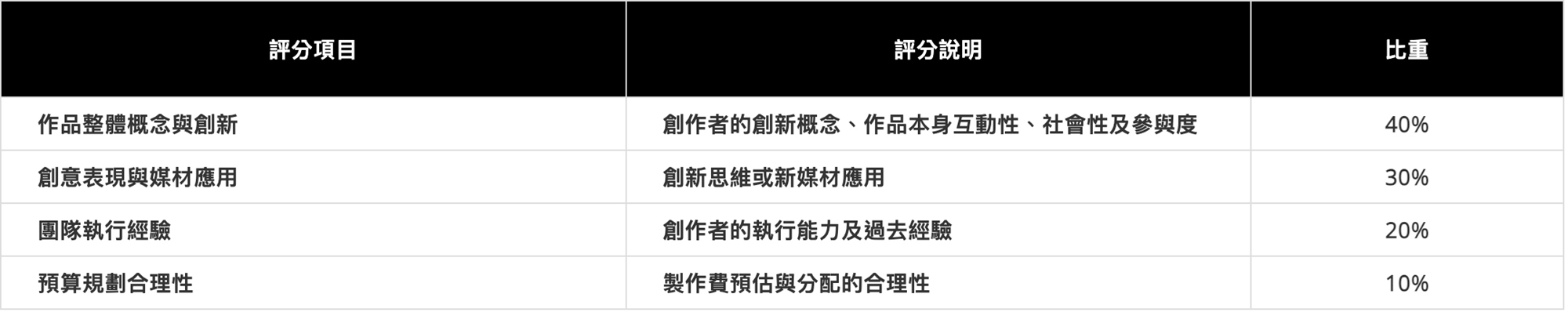 第二期:優選者完成作品並於開幕前通過主辦單位驗收,撥付30%。