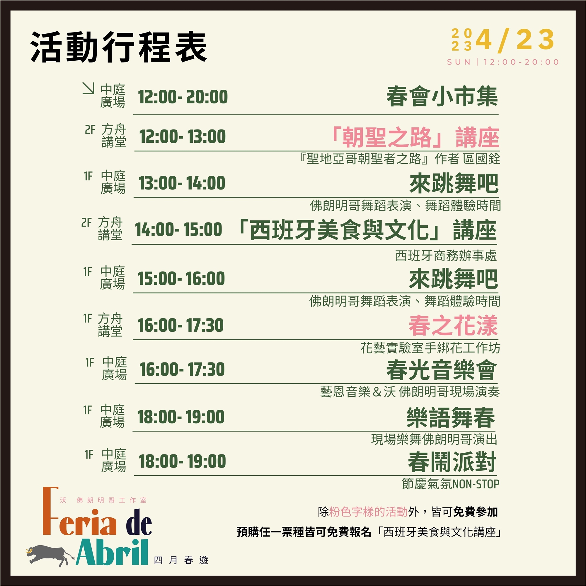 🎉預購「沃春遊」可享4重好康⬇️1.春會風小禮物(限量一百份) 2.春會經典飲品一杯🍹&續杯優惠無限 3.兩張面額25元折價卷任選攤位使用 4.pm2-3「🇪🇸西班牙文化講座」席次