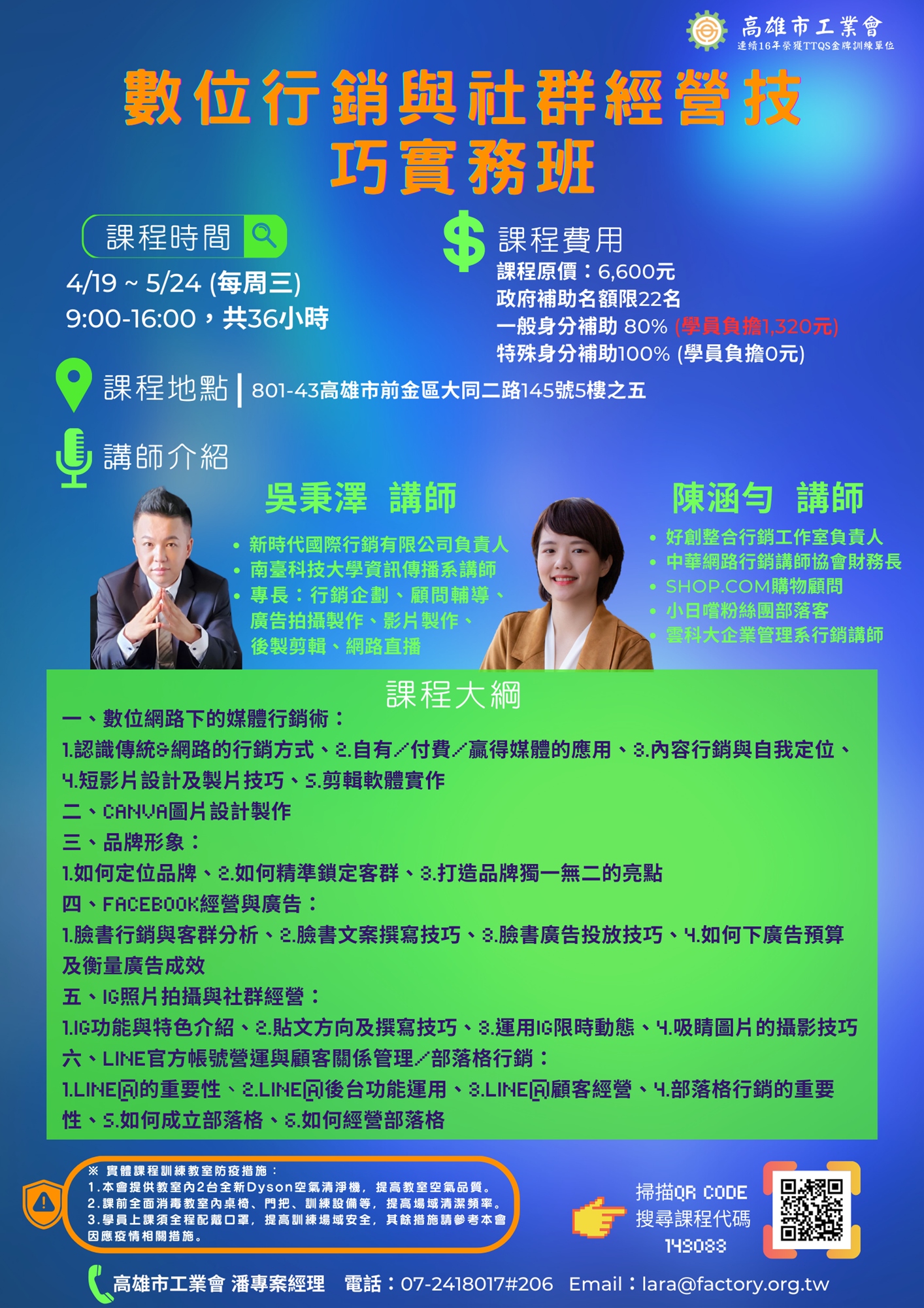 如有任何課程問題,歡迎來電洽詢: