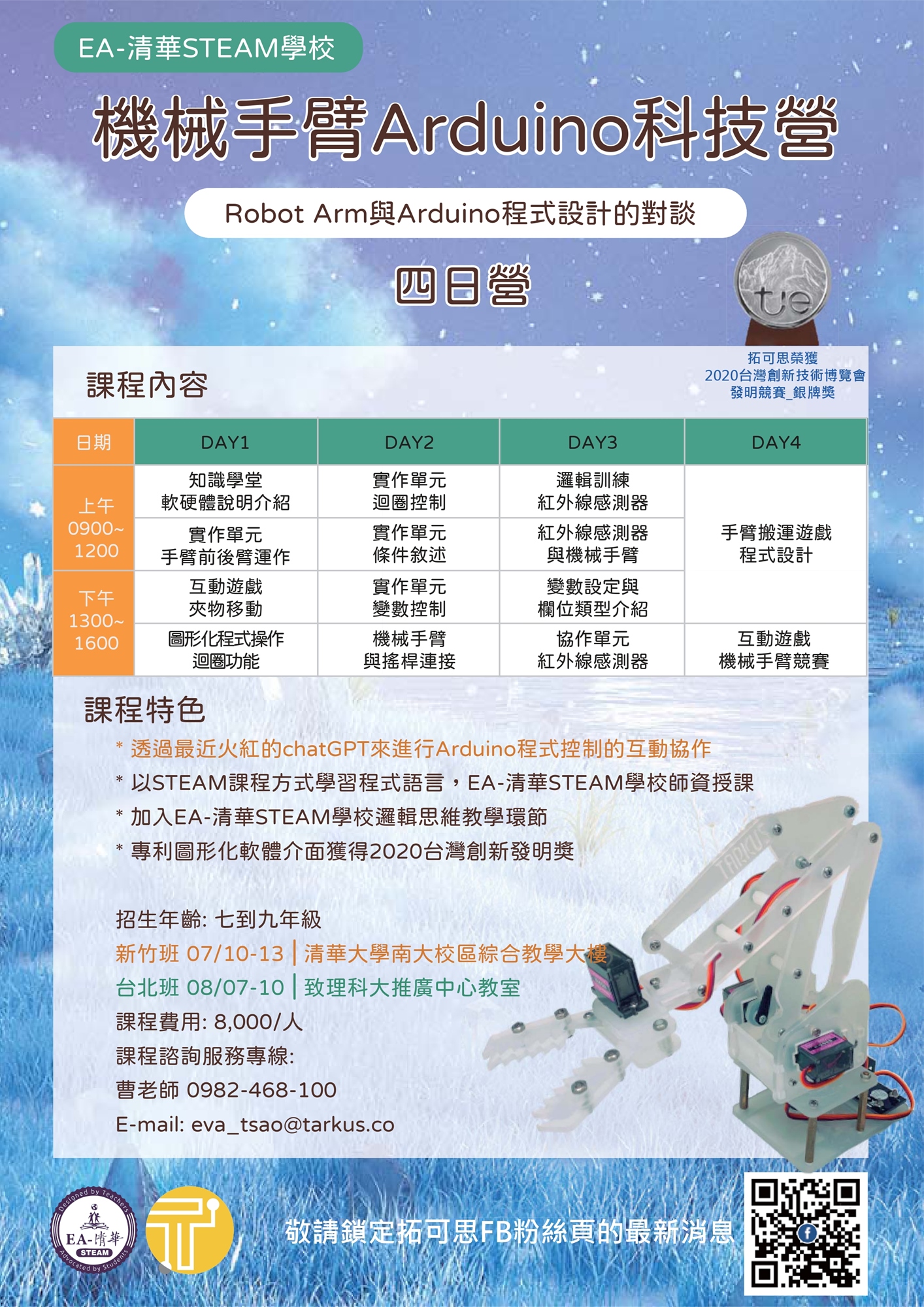 - 學習成果: 講義手冊與EA-清華STEAM學校結業證書