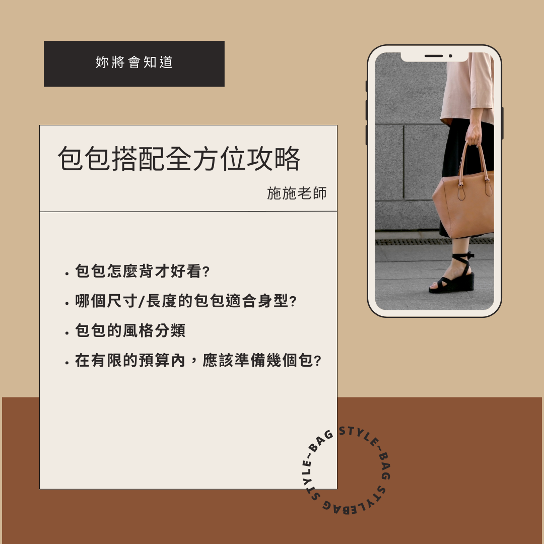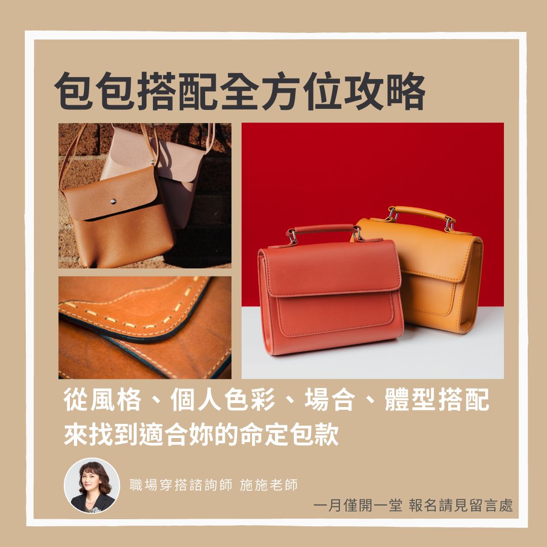 - 請攜帶3個(含以上)自己的包包,可做包款的風格介紹。