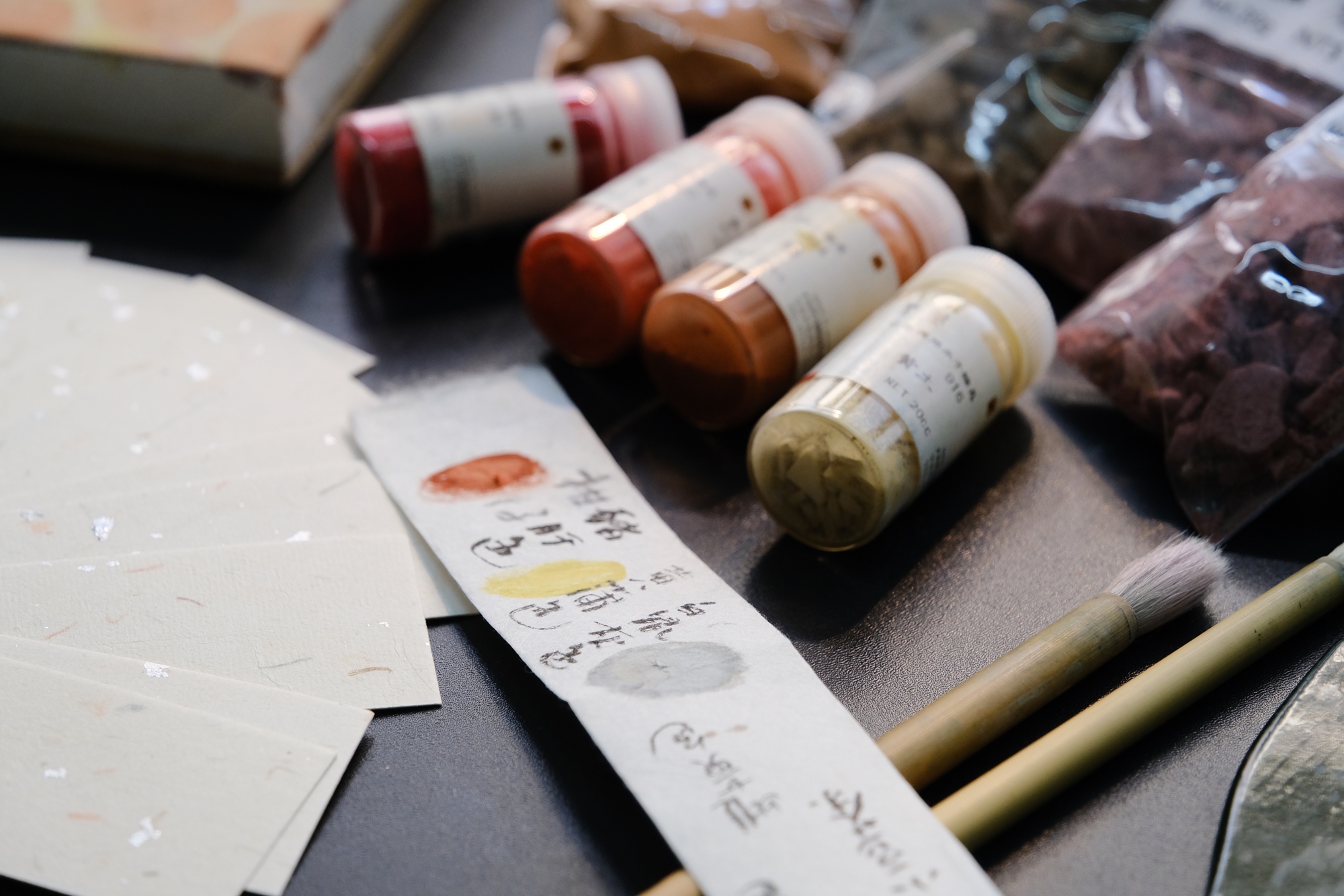 2. 調色過程將使用手指頭攪拌混合少量「水干顏料」與「膠水」,如不介意者再行報名。【 水干顏料成分含有胡粉(牡蠣殼風化後磨成粉)、天然土質或現代化學製作出的染料等。膠水則為動物膠( 果凍原料「吉利丁」成分亦有動物膠)】