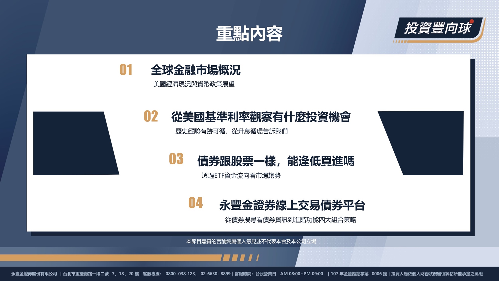 1. 全球金融市場概況、美國經濟現況與貨幣政策展望
