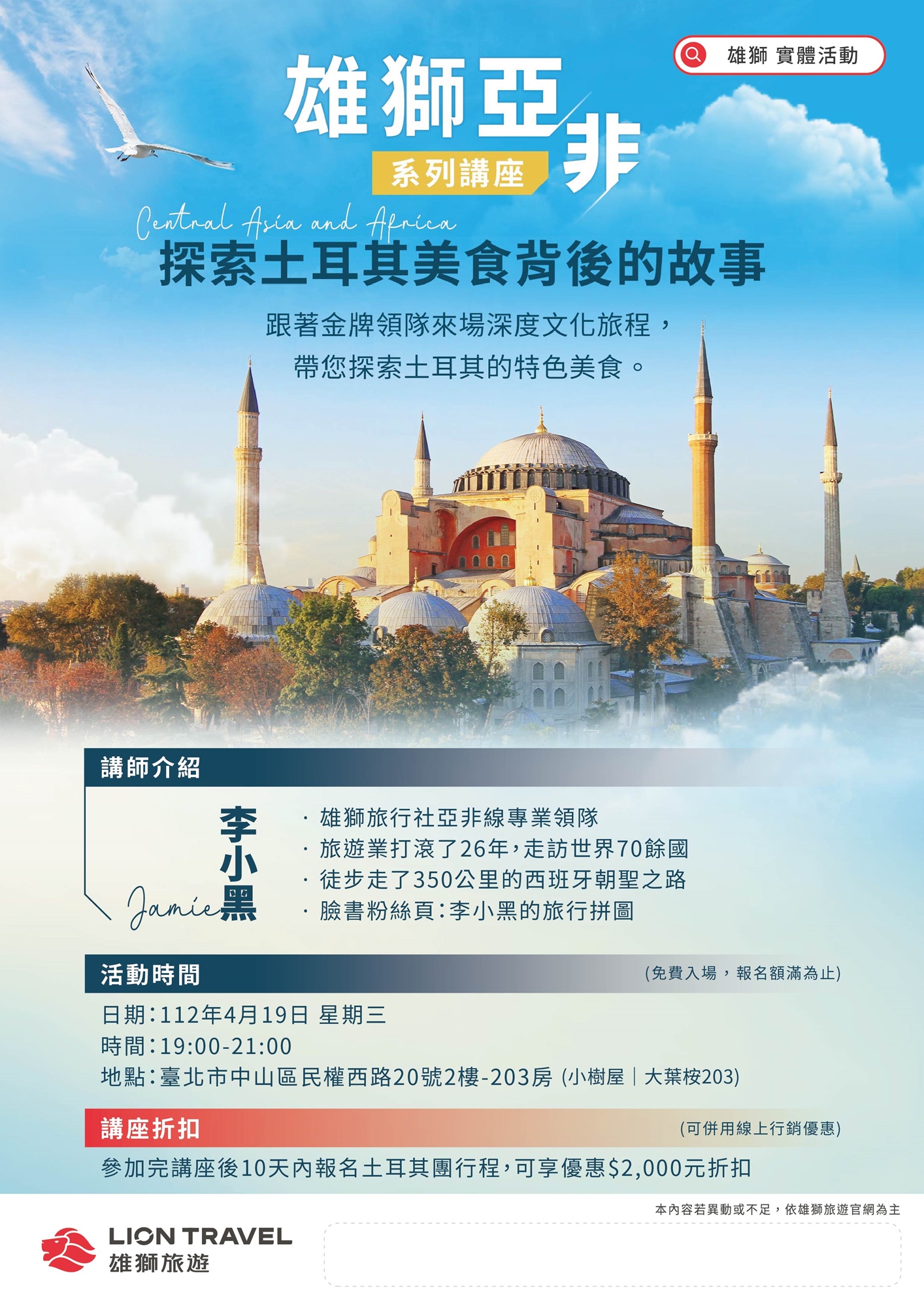 主題:雄獅亞非系列講座-探索土耳其美食背後的故事