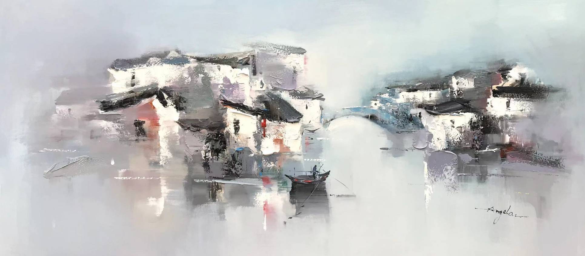 江南風情,儼然是中國文化最具代表性的風光之一。這次的油畫展特色,繼續展現了畫家Angela抽象風格的刀畫作品,融合了傳統的江南元素,以及現代藝術的創新思維。