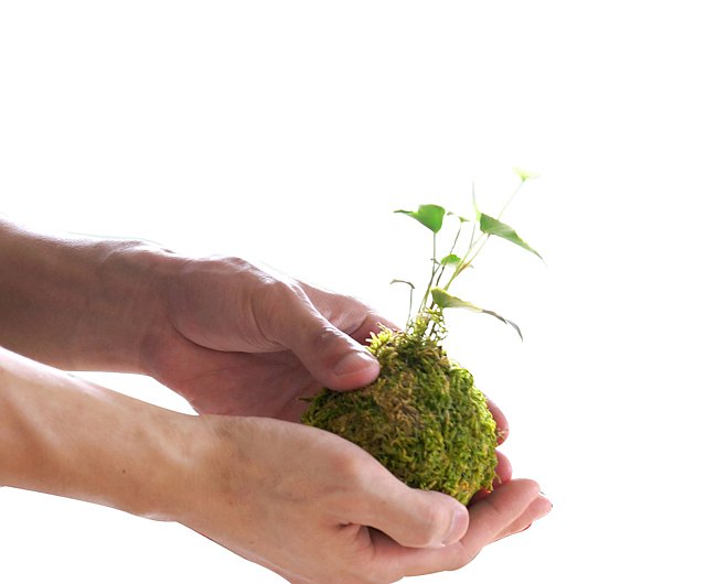 「苔玉(kokedama)」始於日本江戶時代,是日式盆景(Bonsai)的一種。 顛覆一般植物的栽種方式,不需要盆器,而是用天然苔蘚包覆住泥土和植物根系,做成圓球形的基座,做為養植物的自然容器。