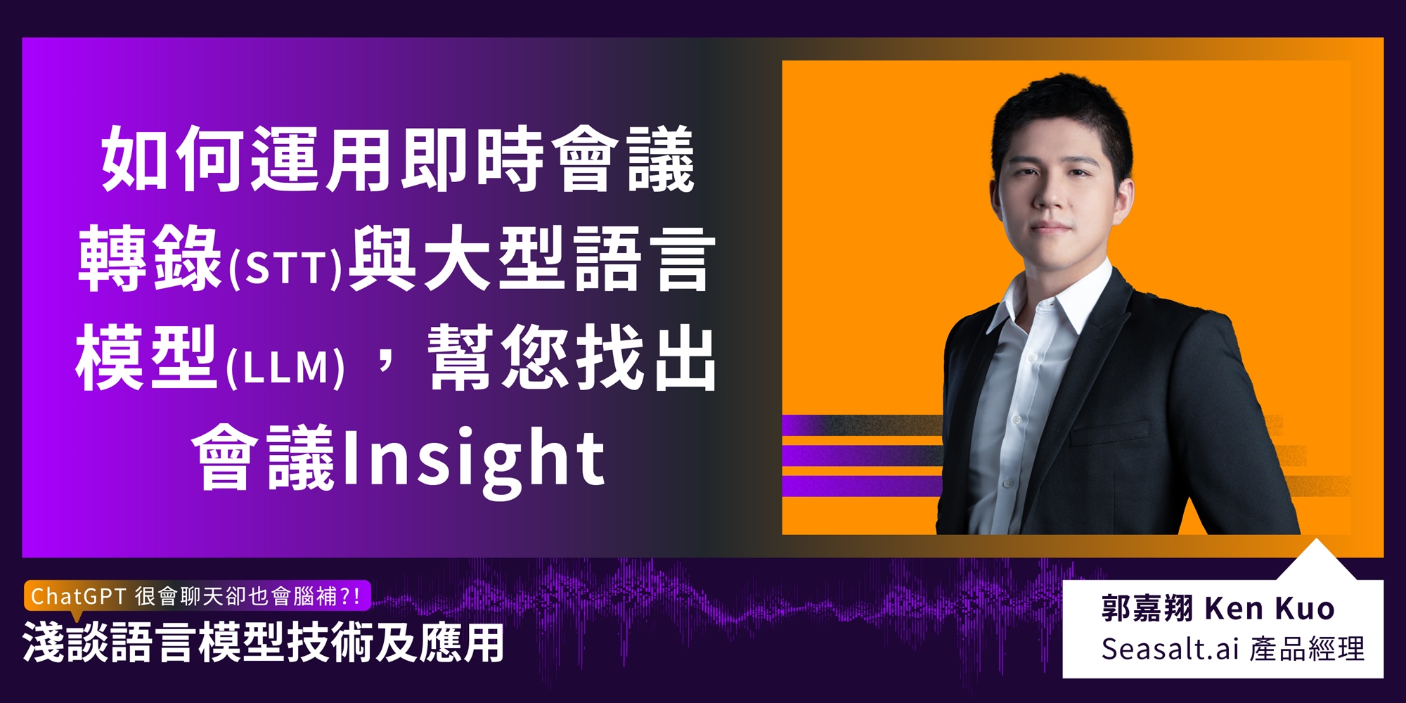 ▎講題二、如何運用即時會議轉錄(STT)與大型語言模型(LLM),幫您找出會議Insight