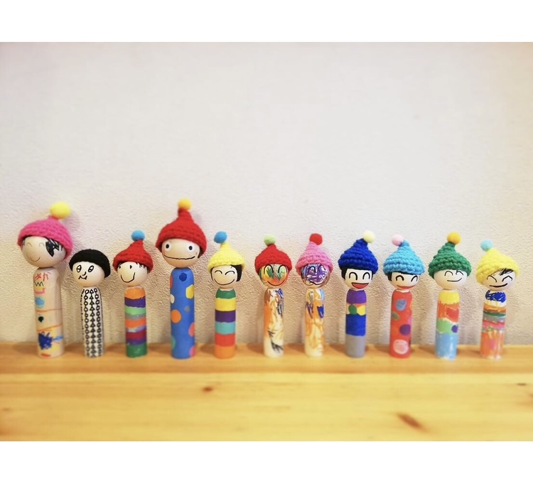 使用傳統日本木芥子的木頭底座進行自由設計創作,透過彩色筆繪畫。