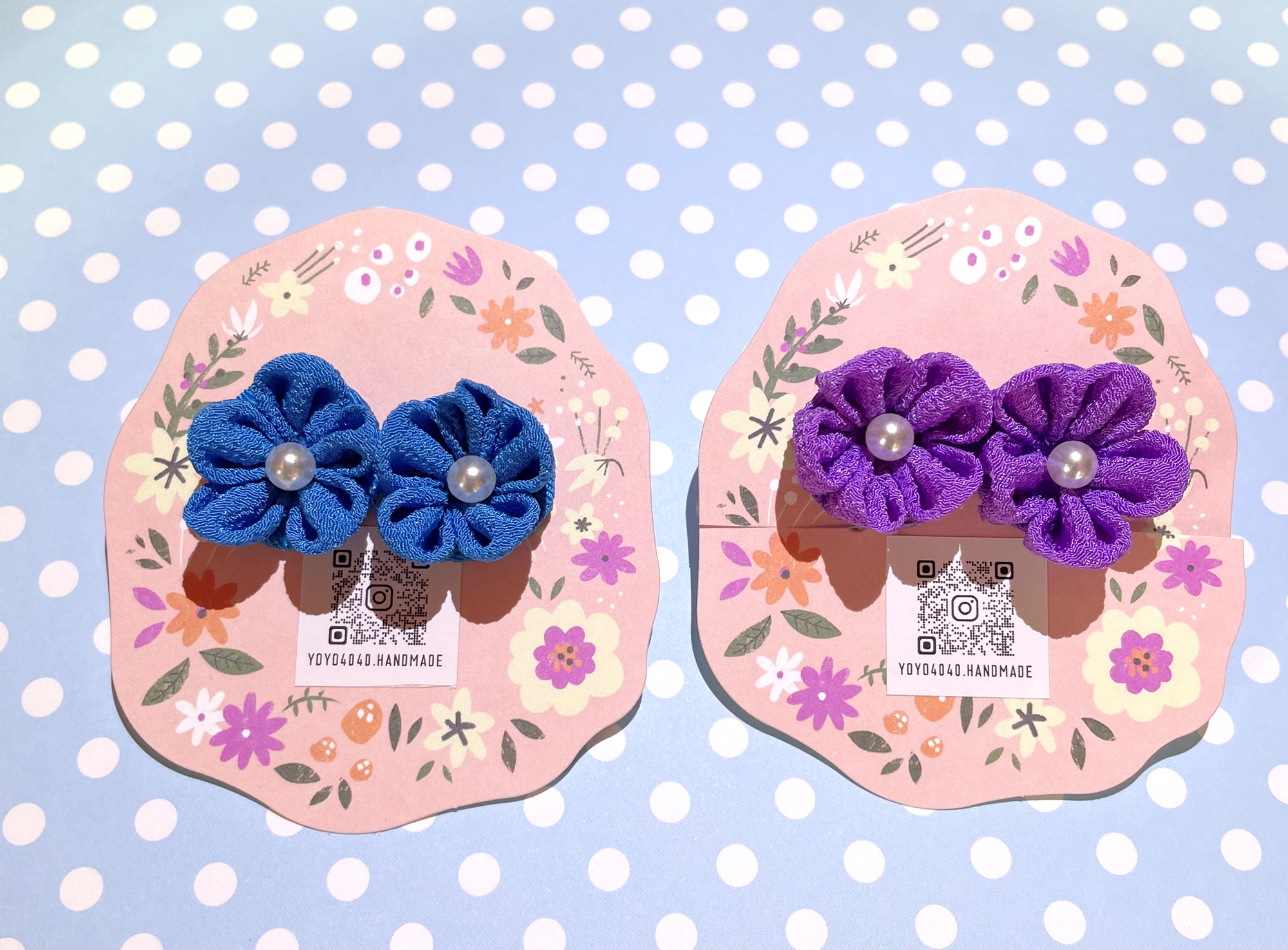 和布日式布花耳環:使用預先裁切好的日本縐紗和日本傳統日式布花工藝製作飾品,