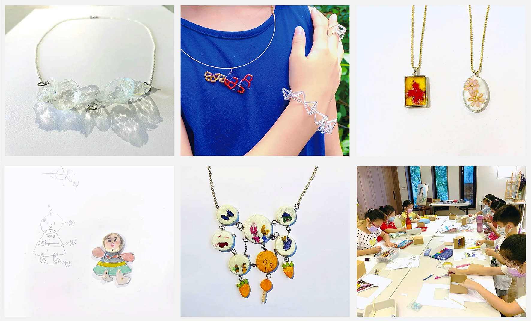 珠寶知識學習,工具的操作,傳統工藝現代的創作方式,用有趣的方式讓孩子尋找自己的靈感來源—設計創作方式,主體作品創作,體驗創作的樂趣。關於設計的腦力激盪,更多複雜材料、技巧體驗,通過分享作品分析設計師的看待世界的方式和創作動機,自主設計和選擇製作方式來實現,在設計師道路上有更深思考。