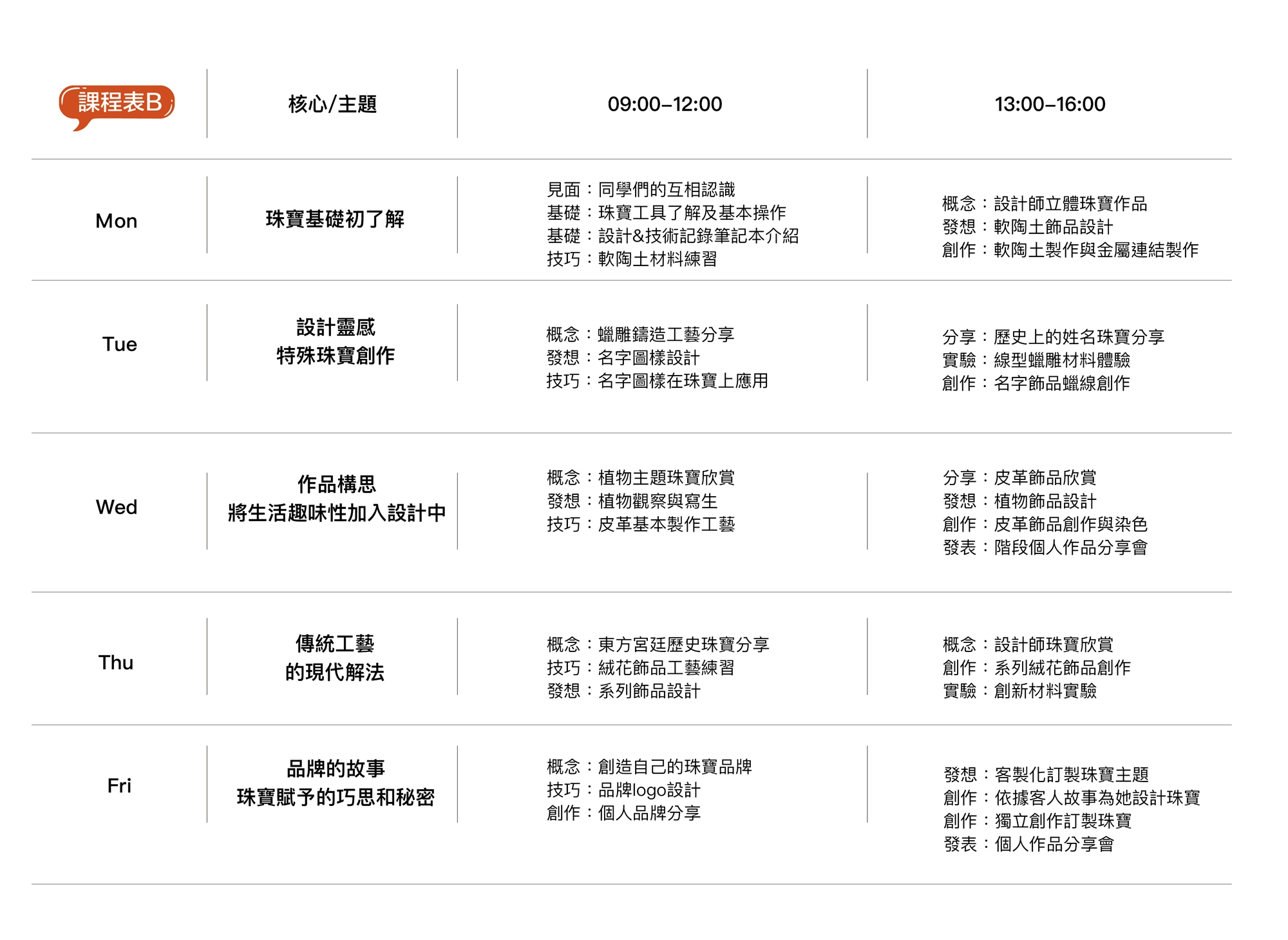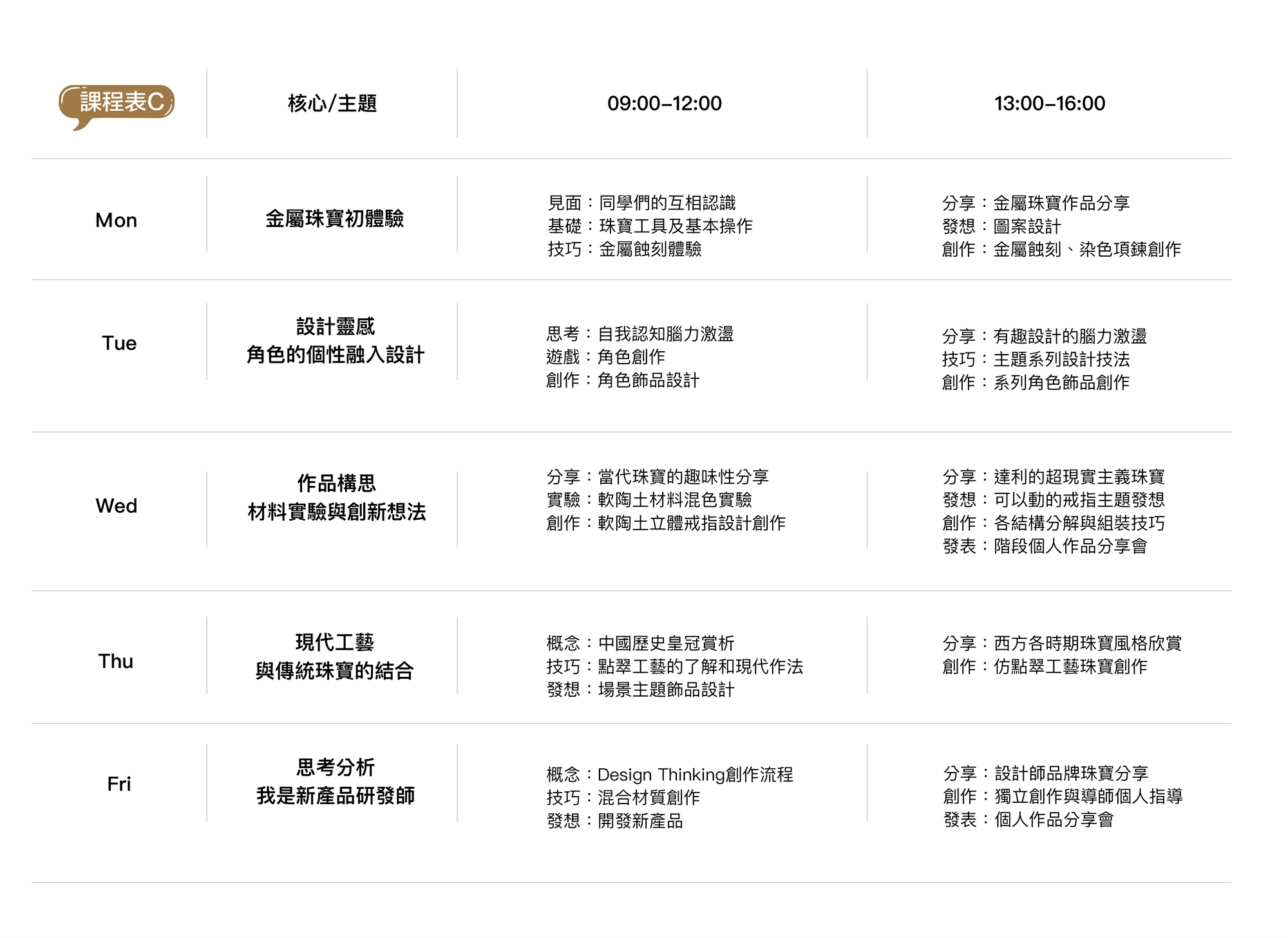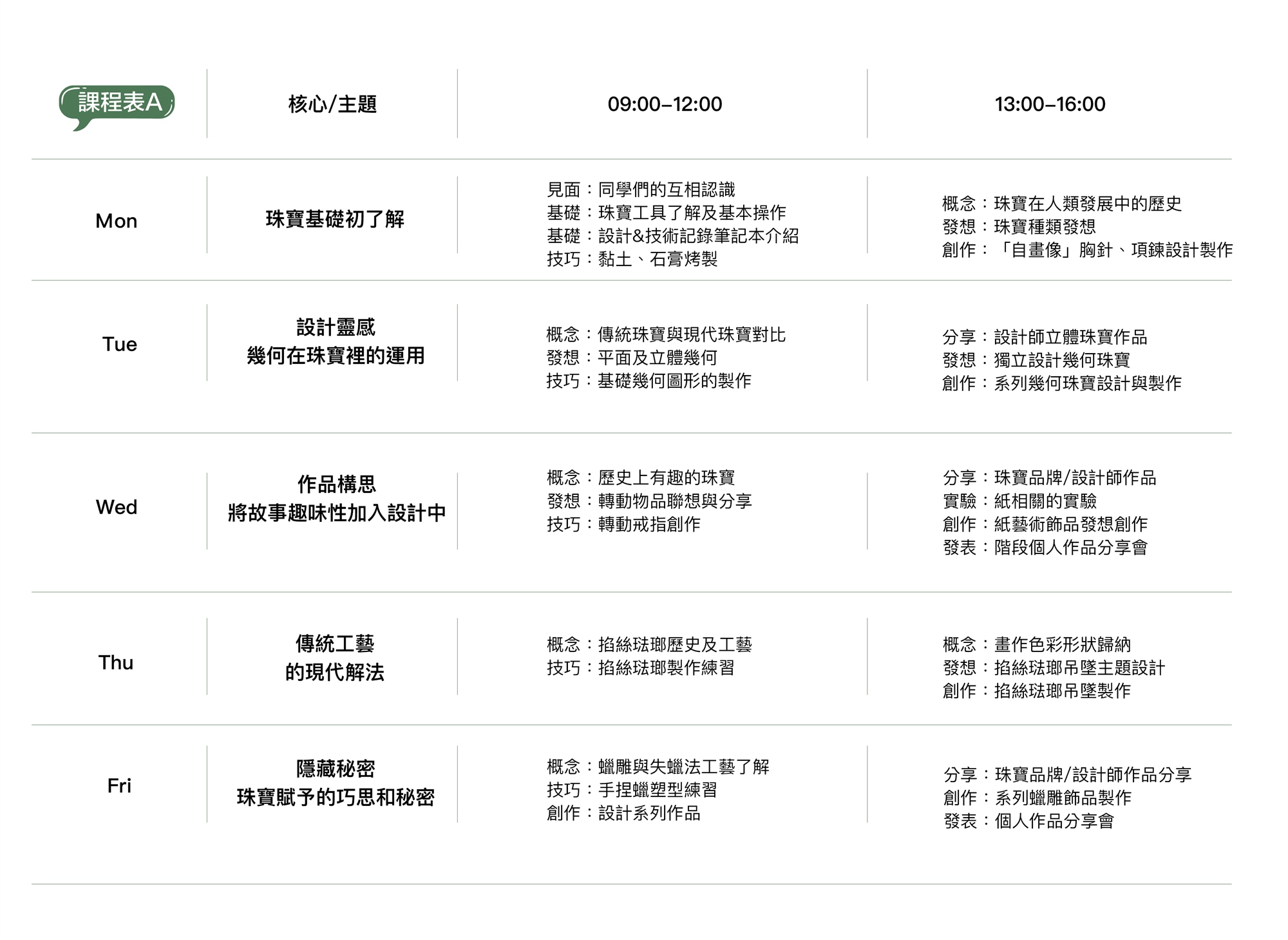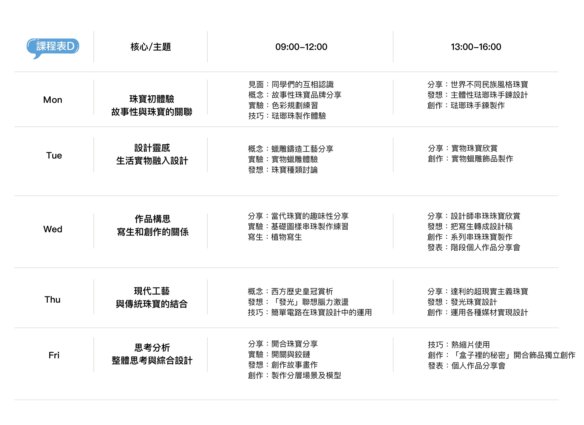 珠寶設計營隊課程表