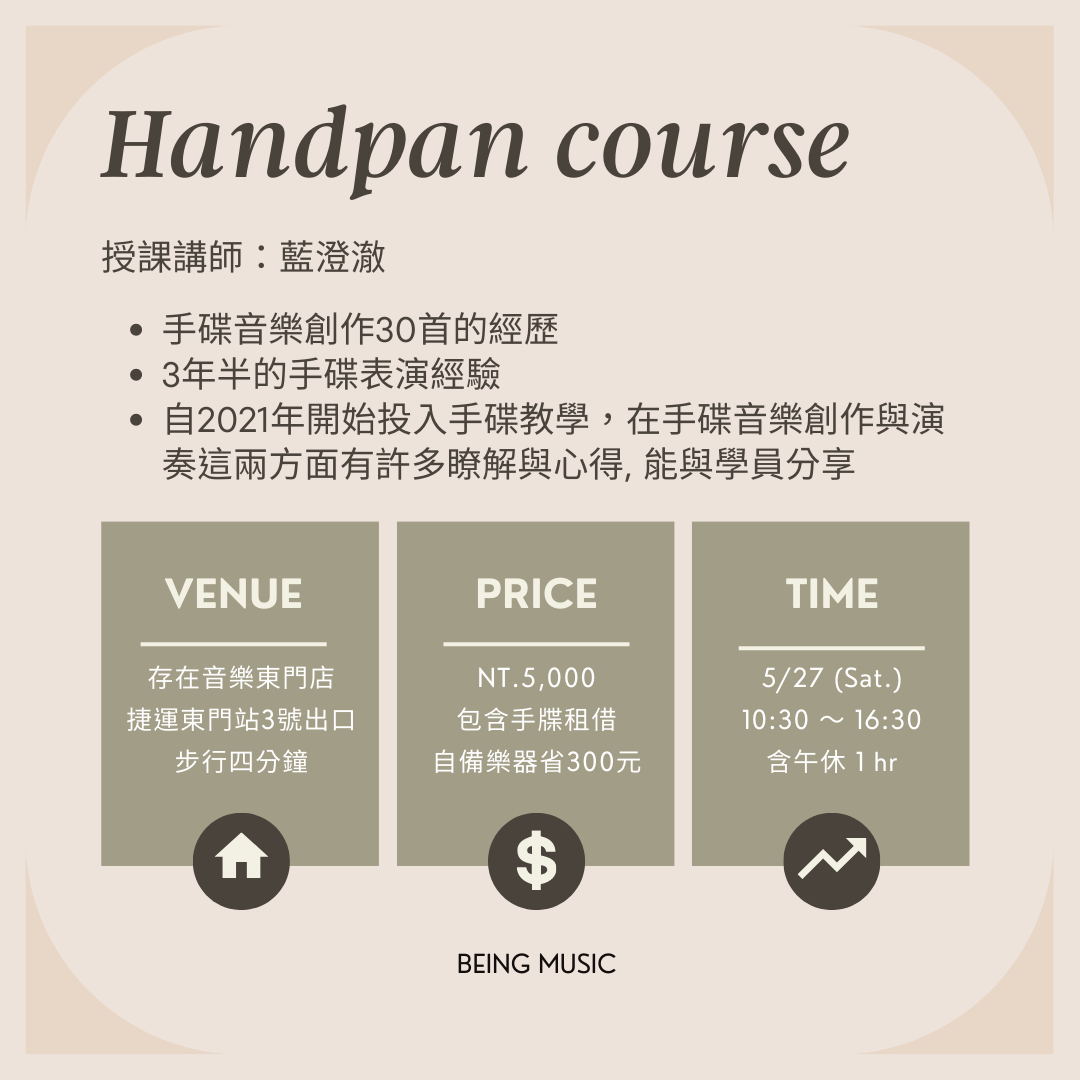 - 自2021年開始投入手碟教學,在手碟音樂創作與演奏這兩方面有許多瞭解與心得,能與學員分享。