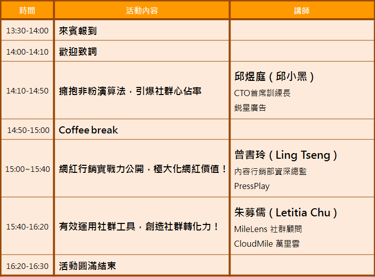 (8)主辦單位保留活動、課程大綱及講師異動之權利,最新資訊請參閱活動網站。
