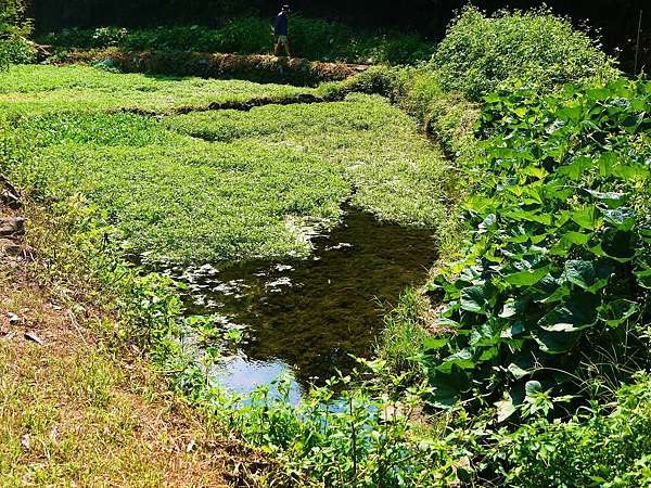 到達第一水源地,可以看到清澈的山泉水湧出泉眼,如礦泉湧泉水質非常清澈,吸引不少人來此採水。而這裡也是許多小農耕作的地方,農村風光和小農的勤奮工作讓人感到心曠神怡,感受到土地和人的親密互動。